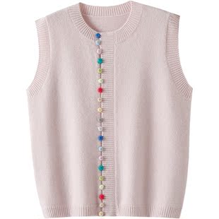 马甲温柔系扣针织坎肩女叠穿慵懒 背心无袖 清仓捡漏 100纯羊毛开衫