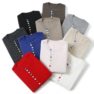 新款 秋冬季 女士圆领平针保暖纯色简约套头打底衫 鹿王100%羊绒衫