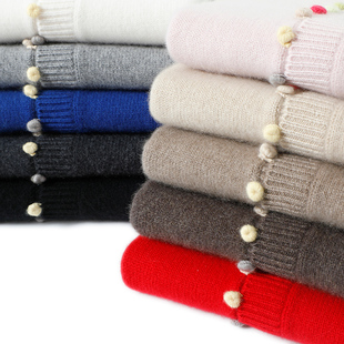 100纯羊绒羊绒衫 女圆领加绒毛衣女加厚秋冬内搭一体绒打底羊毛衫