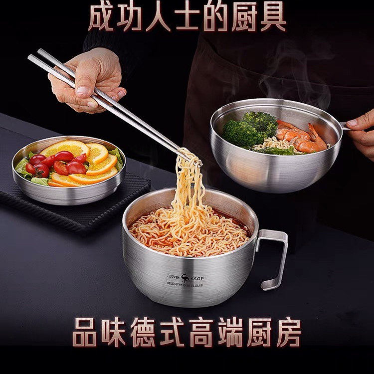 泡面碗带盖宿舍用学生304不锈钢手柄韩式 拉面螺蛳粉水果汤大碗
