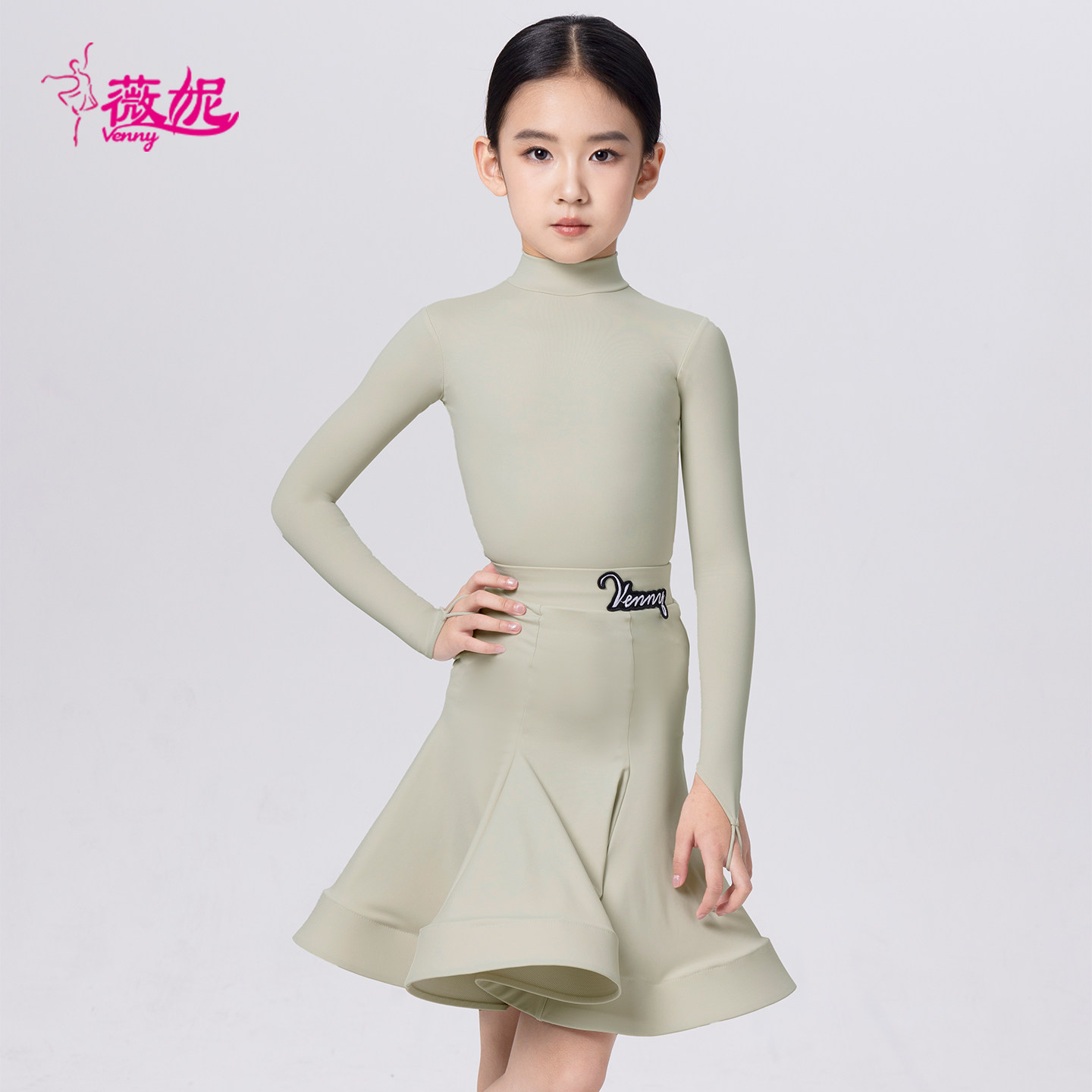 CONNY拉丁舞服套装 上衣半身裙表演出服 女儿童日常舞蹈训练功长袖