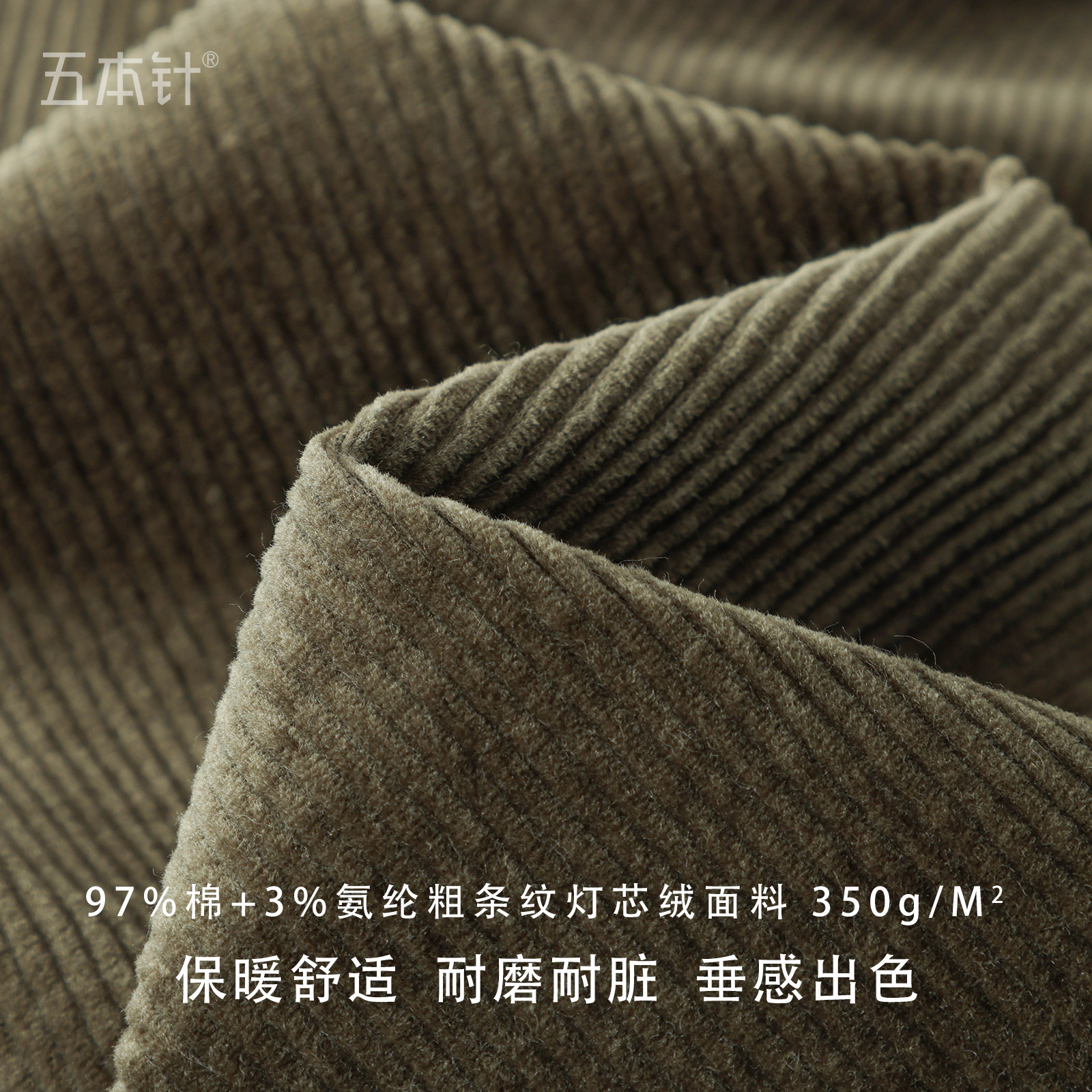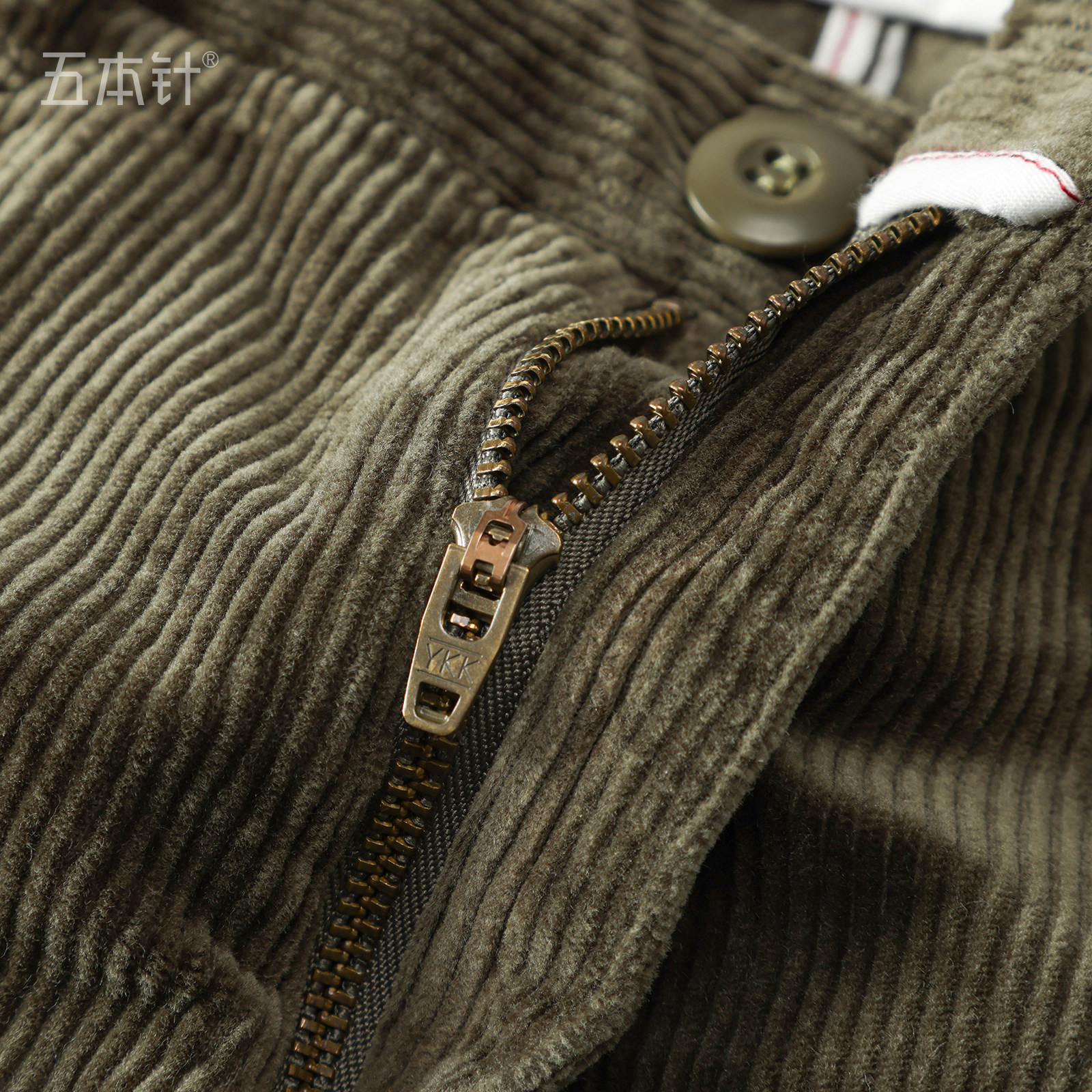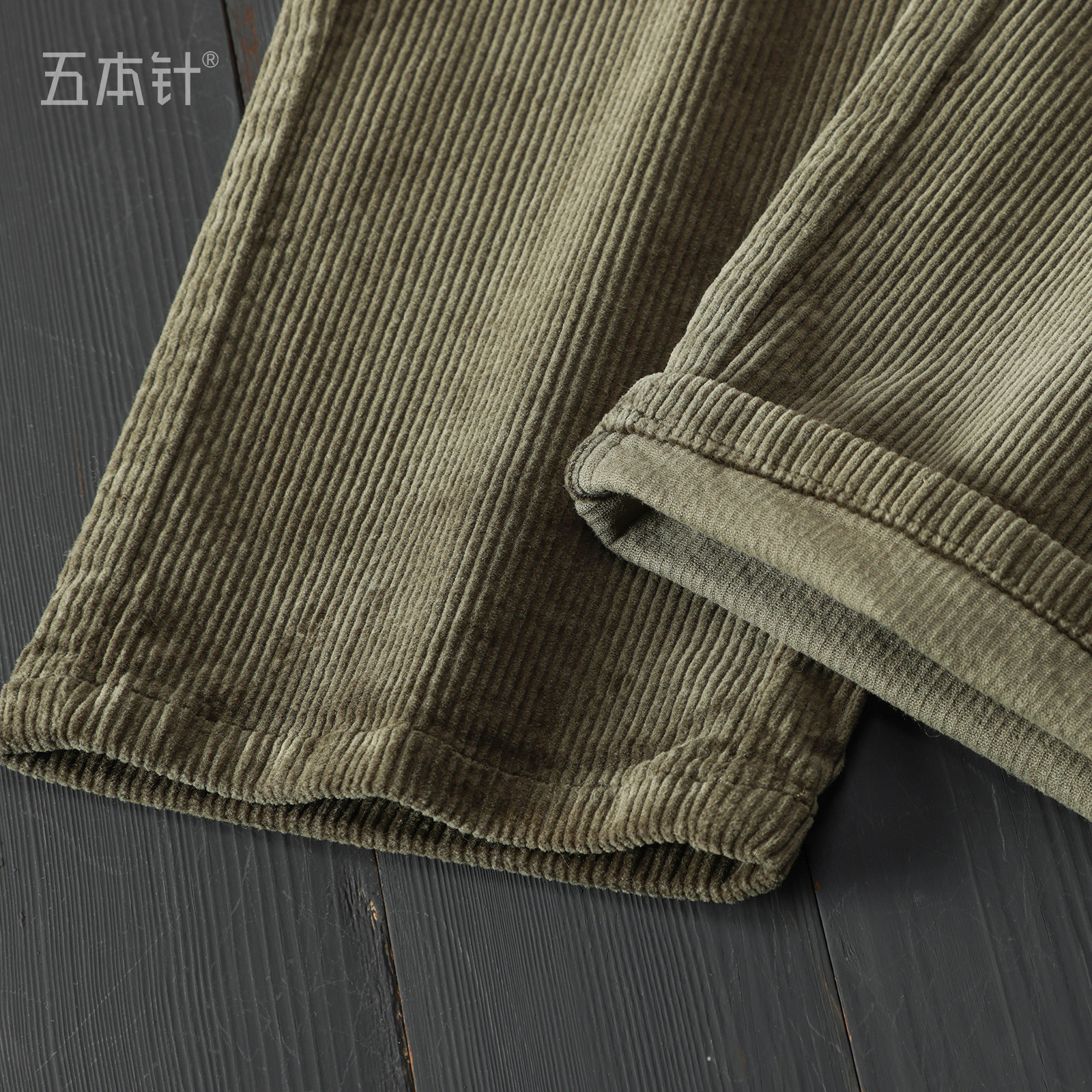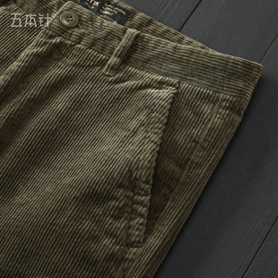 弹力纯棉粗条灯芯绒休闲长裤 秋冬 350g平腰洗水复古百搭暗绿色长裤