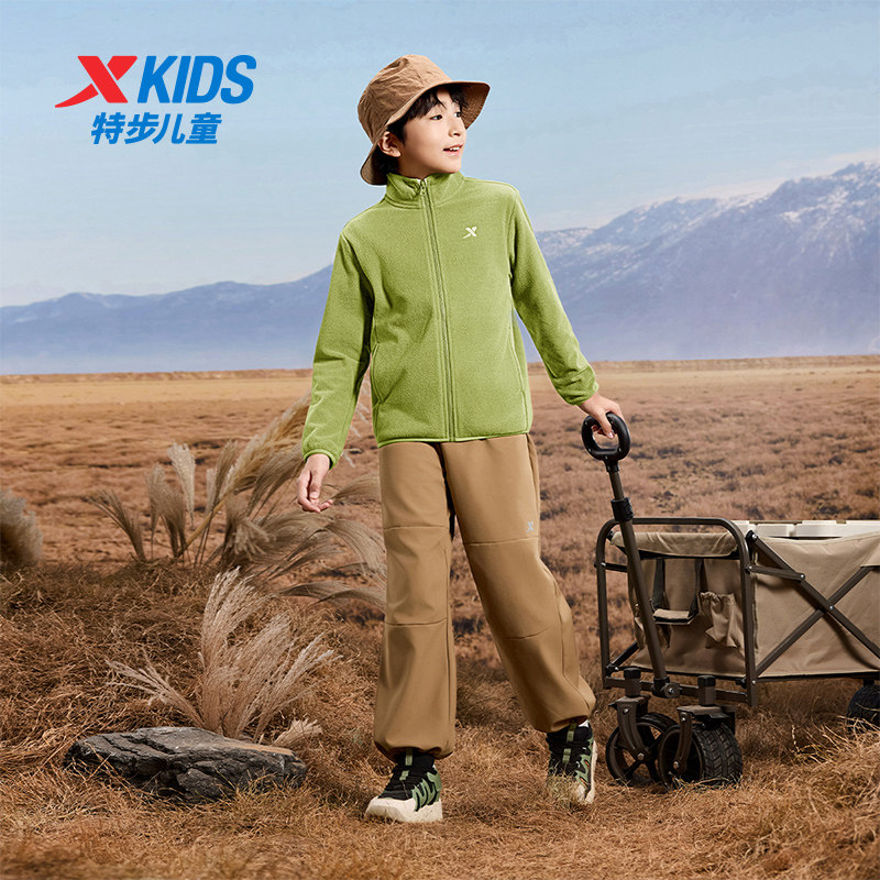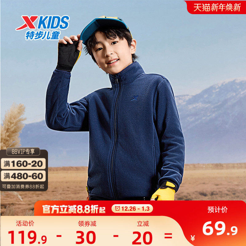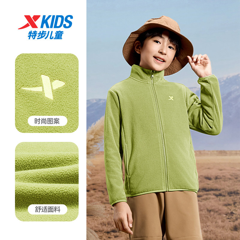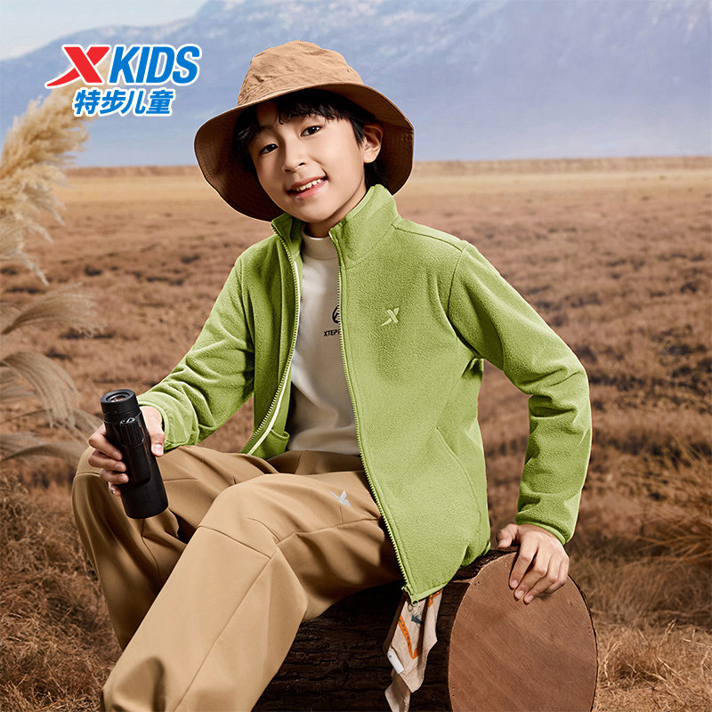 特步童装 男大童摇粒绒卫衣外套儿童运动保暖女童柔软外套 秋冬新款