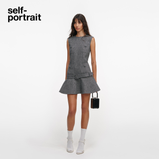 灰混色羊毛混纺小香风人字纹连衣裙 2026早春新款 self portrait