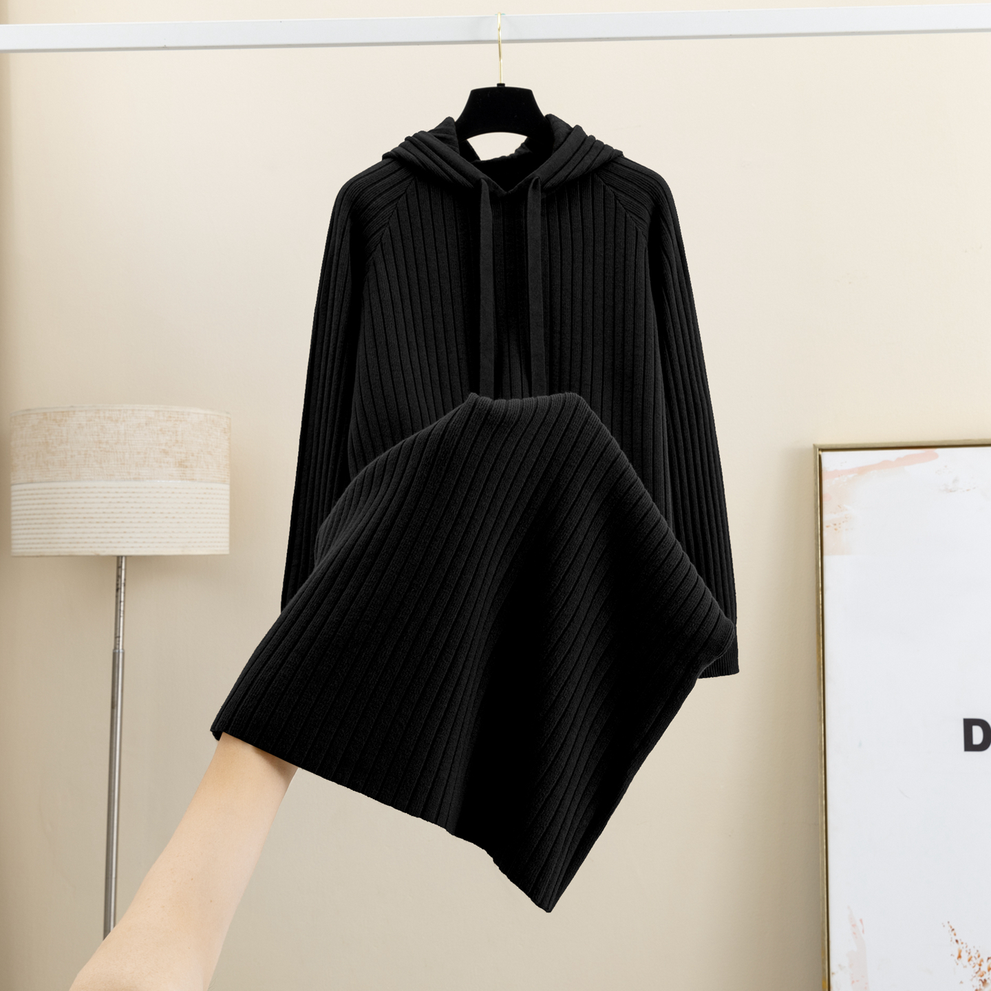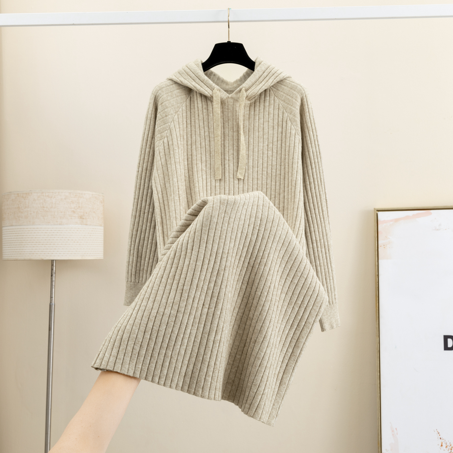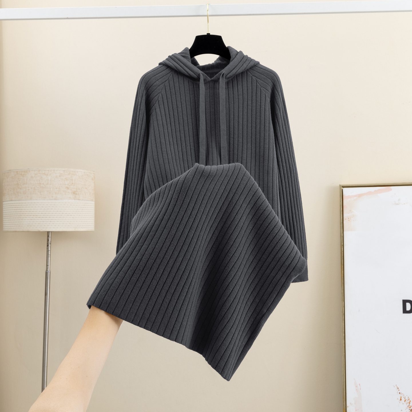 秋冬新款 连衣裙女宽松过膝羊毛外穿内搭打底毛衣长裙 连帽针织长袖