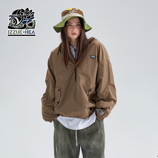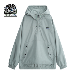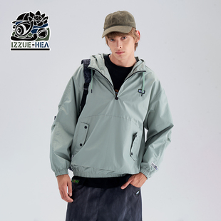 izzue国潮醒狮工装 i.t 连帽半开襟拉链风衣夹克外套男情侣 HEA