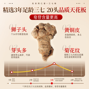 北京同仁堂三七粉正品 官方旗舰店云南文山三七中药材片田七粉37粉