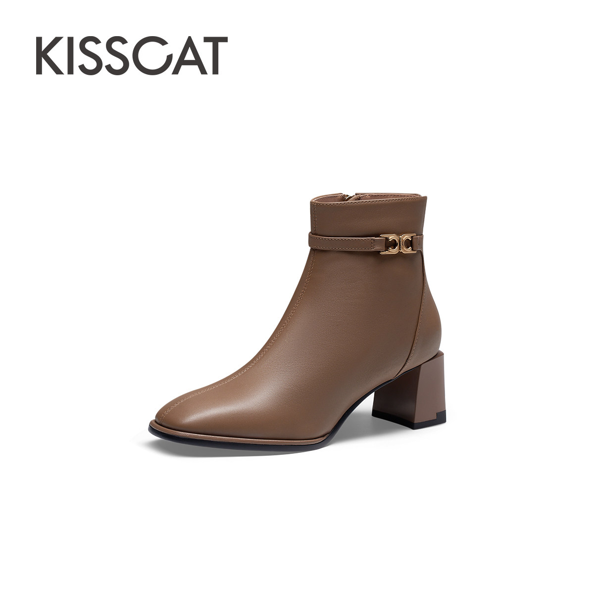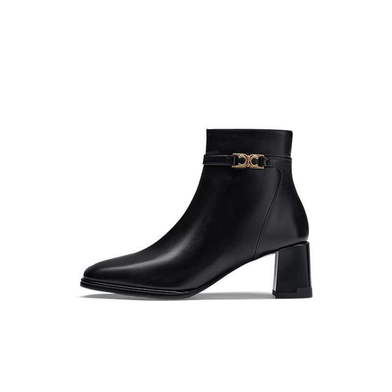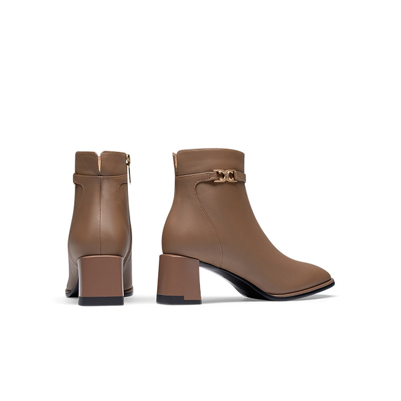 靴F3051DD5 通勤方头复古短靴粗跟女时装 百思图2025冬季 商场新款