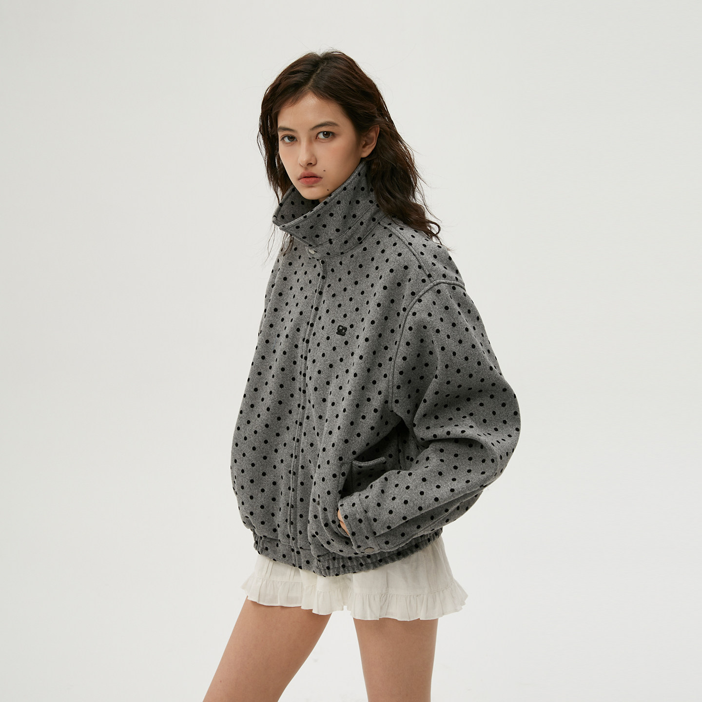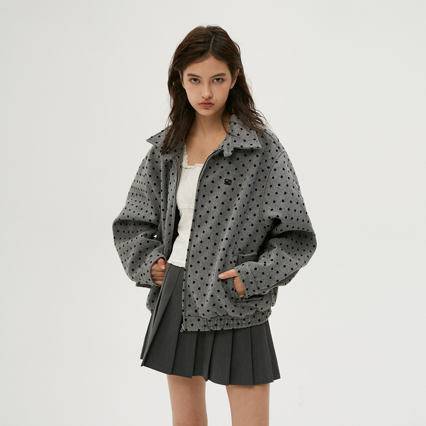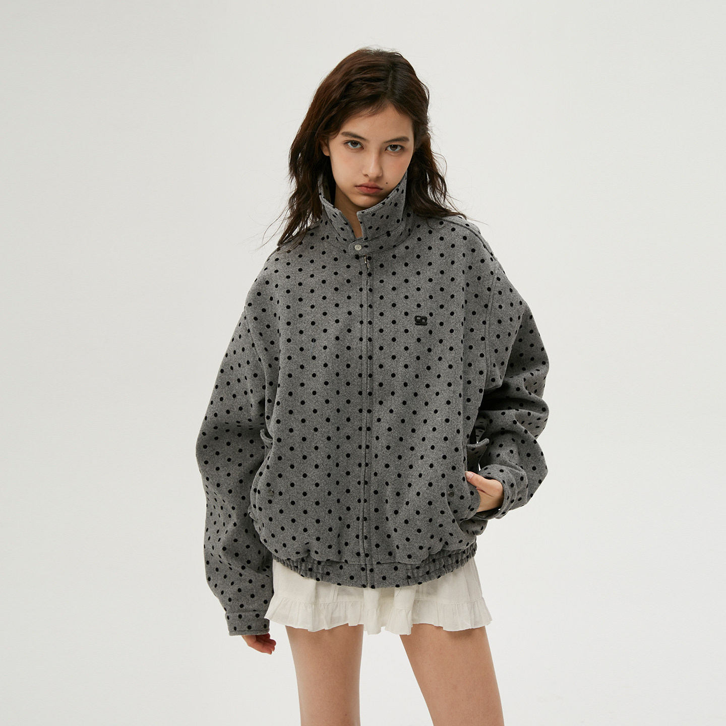 小众复古韩系哈灵顿宽松外套夹克女 植绒波点 Clamisgold 岚室