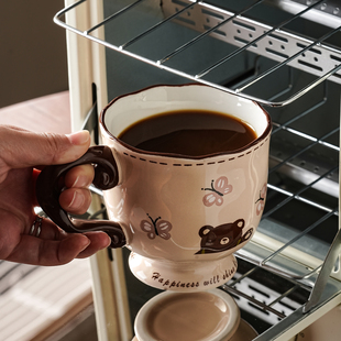 好看 马克杯陶瓷水杯女士高颜值咖啡杯设计感小众家用早餐杯带盖