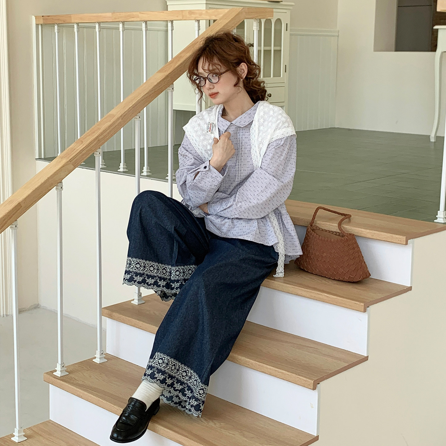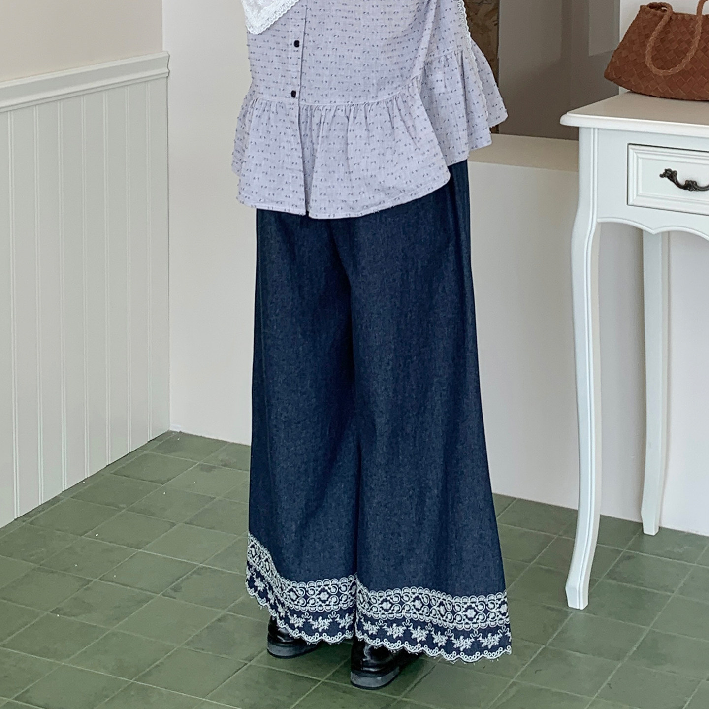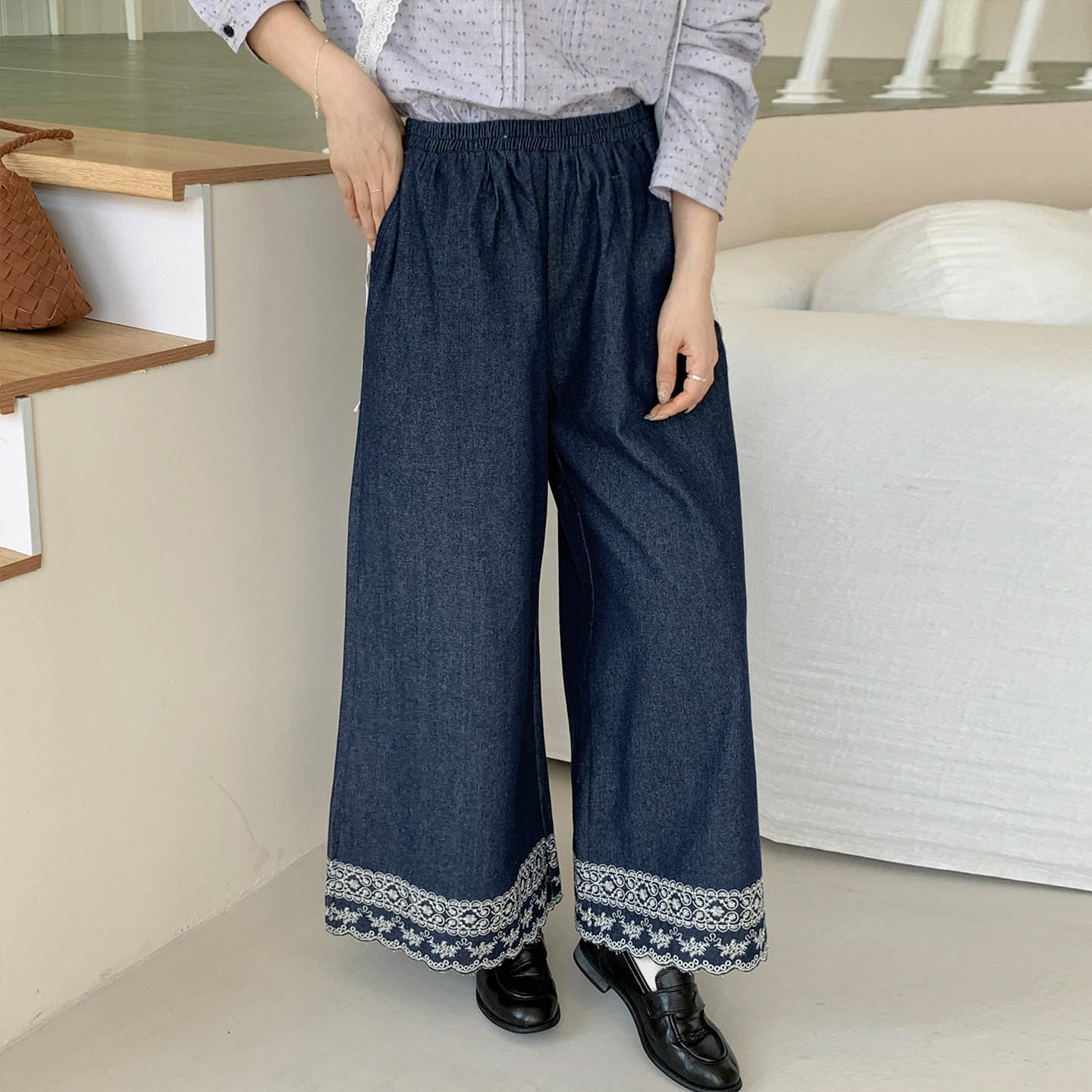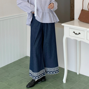 新款 CRISP日系穿搭刺绣阔腿牛仔裤 子2025秋季 型超好看裤 女宽松版