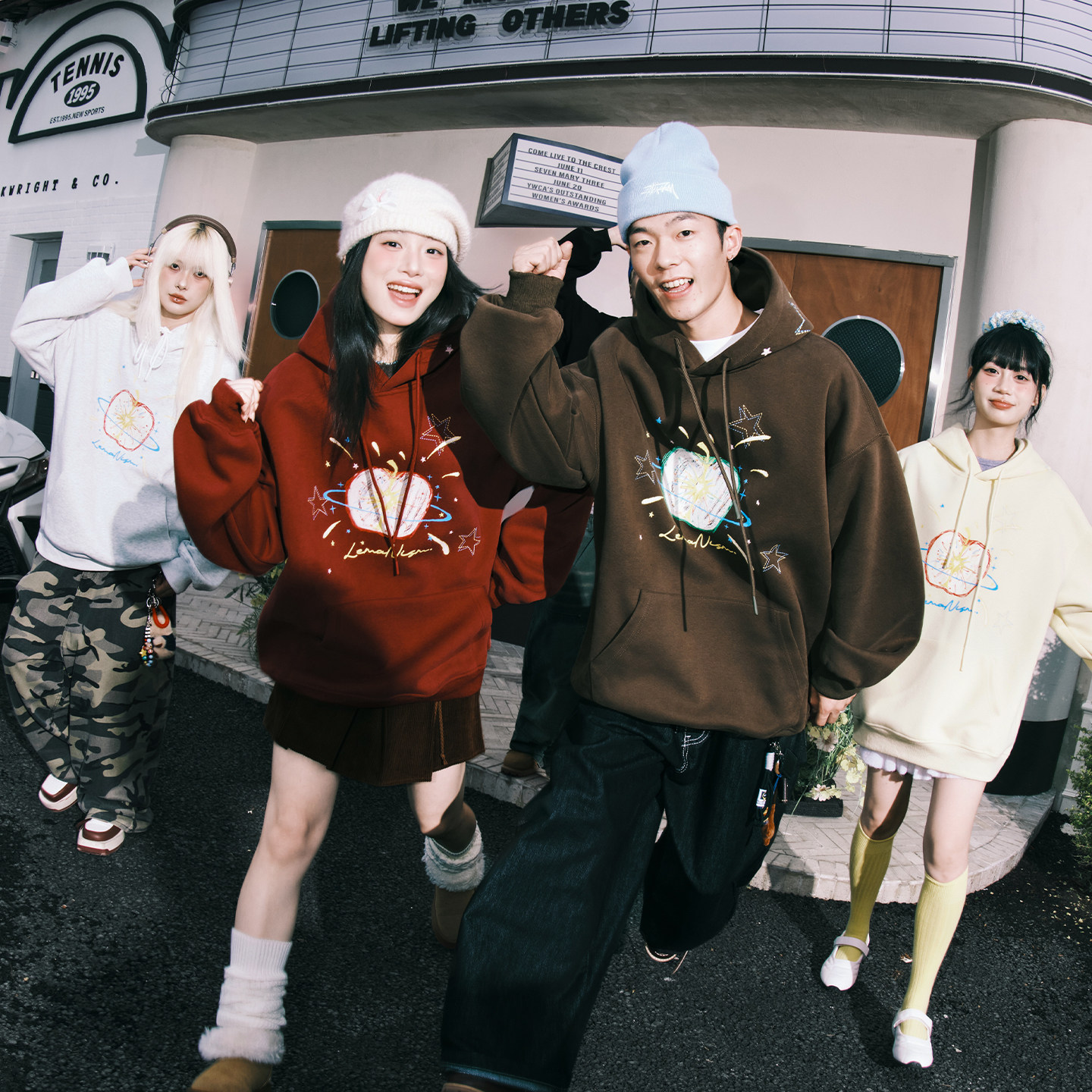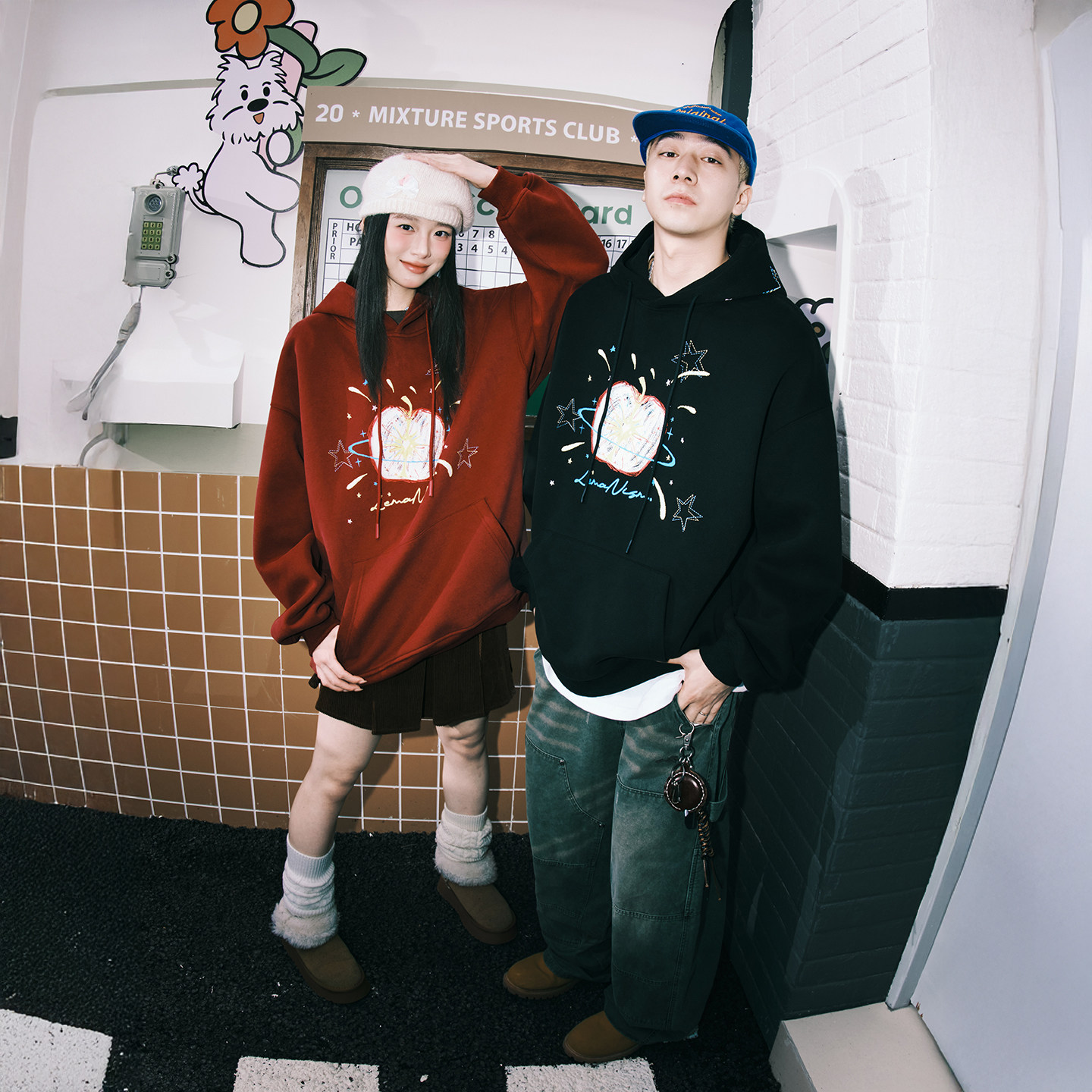 情侣款 新款 潮流涂鸦苹果加绒连帽卫衣男2025春秋季 lemanism美式