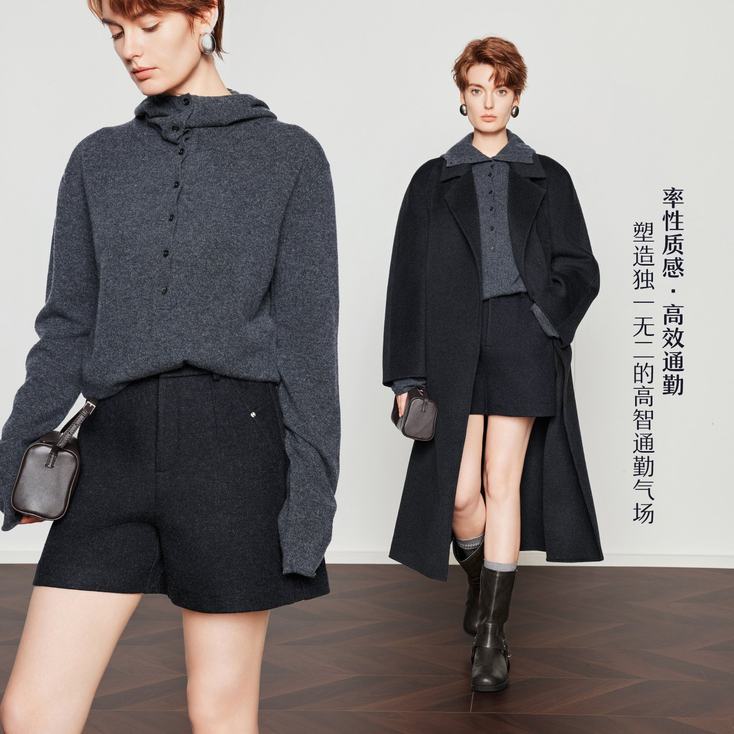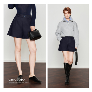 宽松时尚 女25冬新款 CHICJOJO灰色休闲裤 三分毛呢靴裤 通勤格律