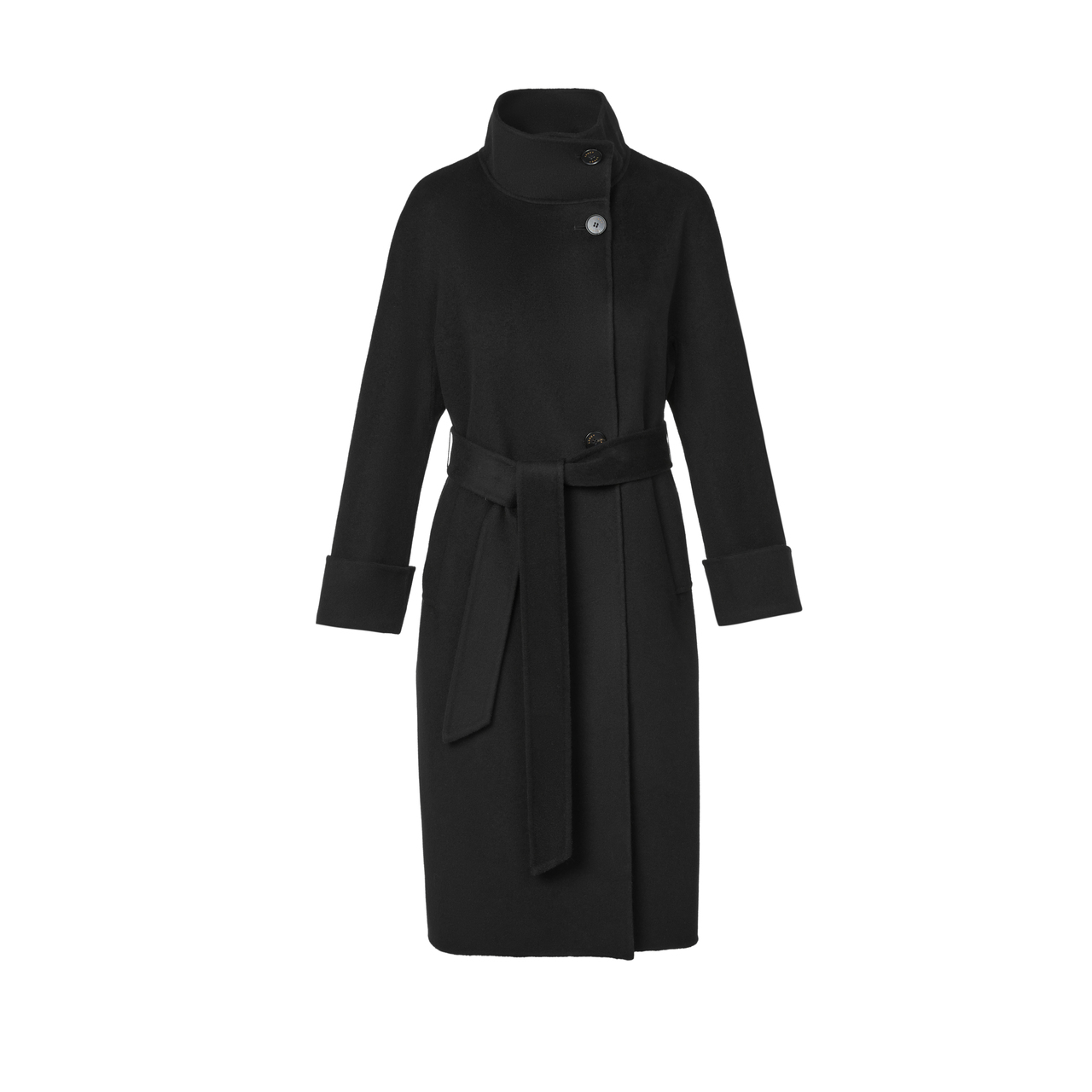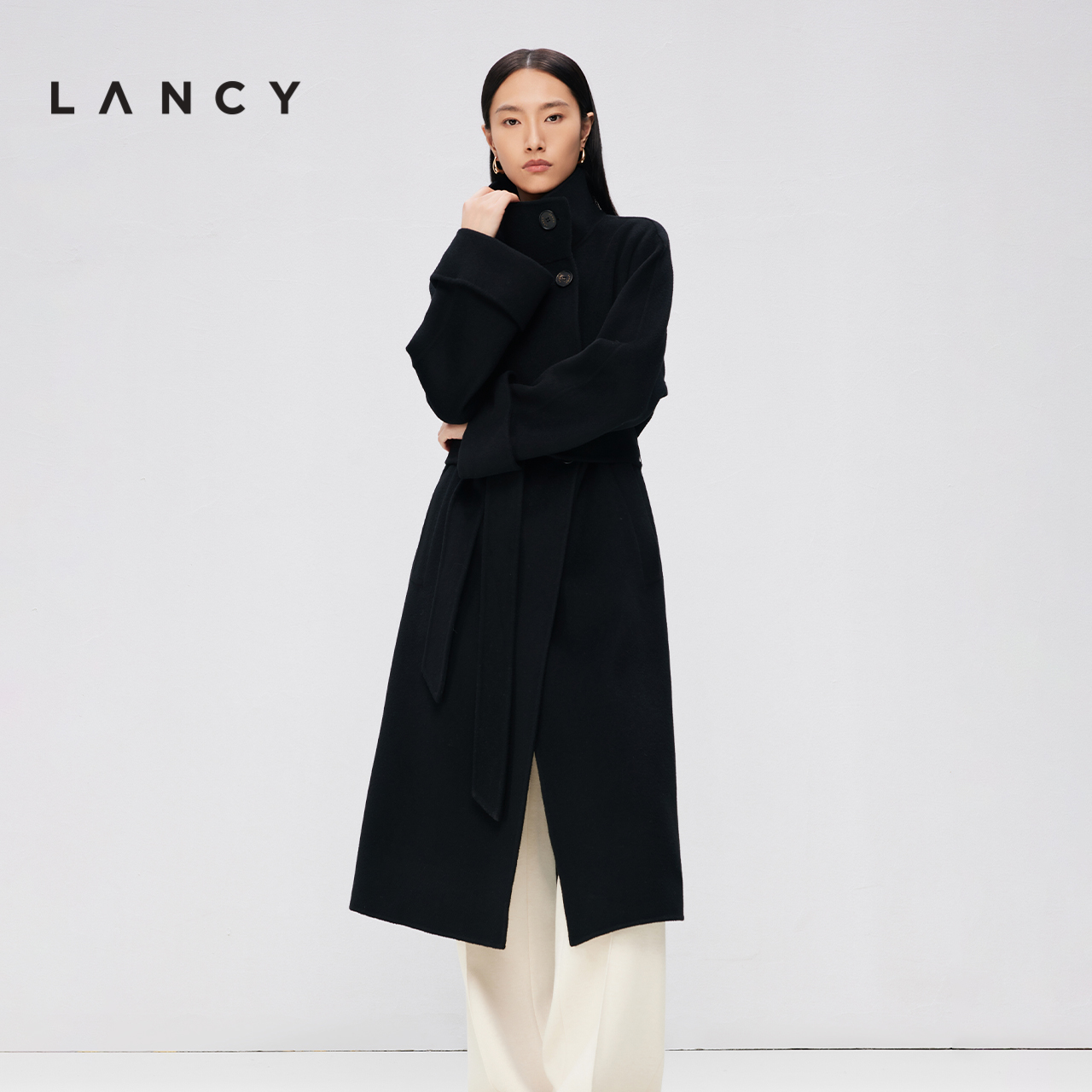 双面呢羊毛大衣女士气质毛呢外套 黑色经典 LANCY 朗姿2023秋冬新款