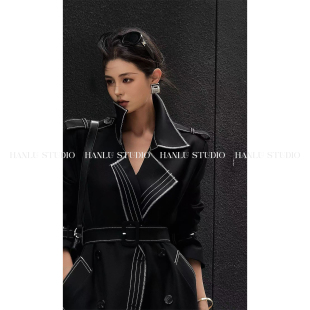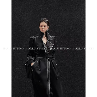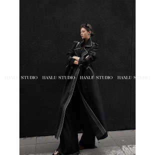 HanLu 风衣 studio小众高智感重工双排扣撞色立裁明线高领羊毛长款