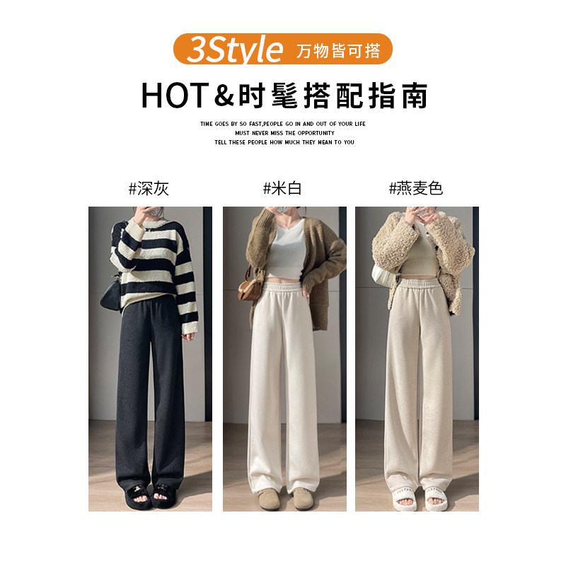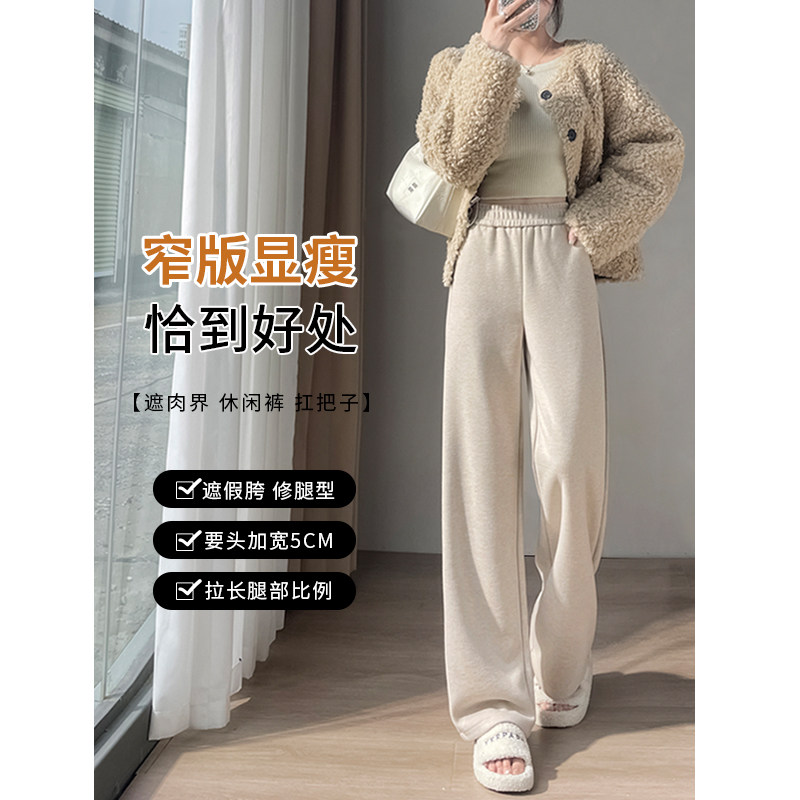 直筒糯米裤 垂感加绒小个子窄版 子 女秋冬2025新款 燕麦色羊绒阔腿裤