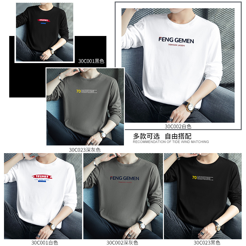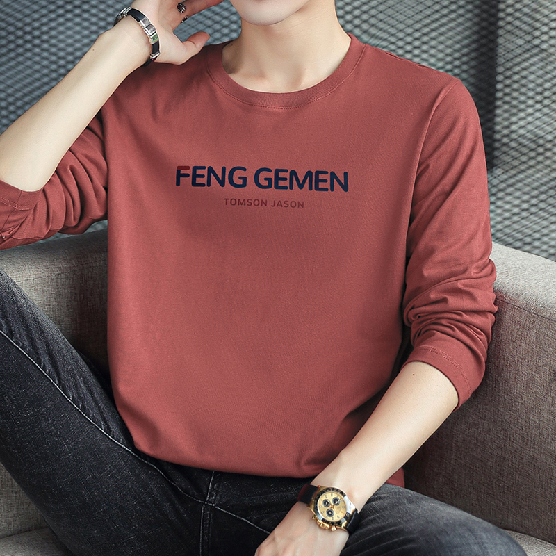 宽松全棉内搭打底衫 长袖 印花小衫 秋装 圆领秋衣 t恤男潮流秋季