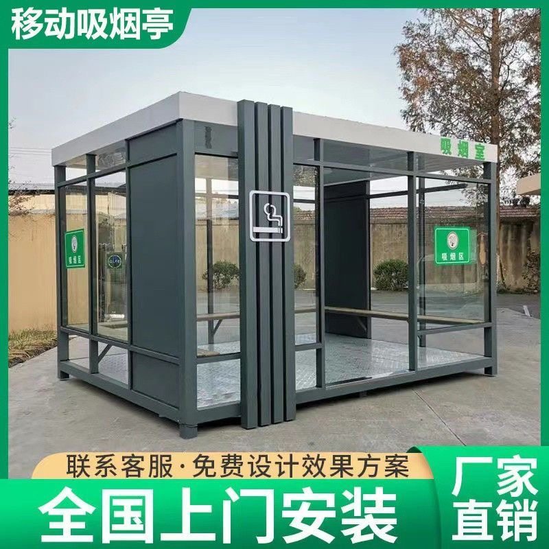 户外吸烟亭室外吸烟区景区吸烟室钢结构移动公共园区吸烟房成品