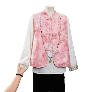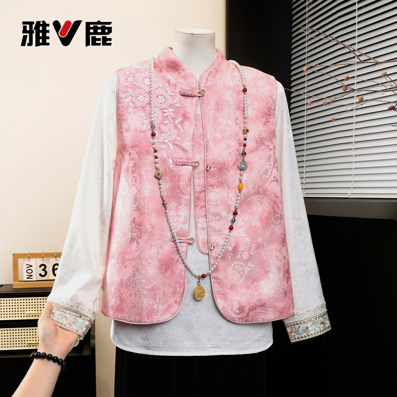 雅鹿正品 新款 妈妈装 国风马甲外套春装 复古马夹上衣套装 新中式