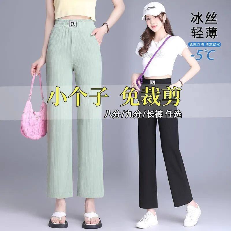 145小个子八九分冰丝阔腿裤 子 2026春夏宽松高腰显瘦直筒女士长裤