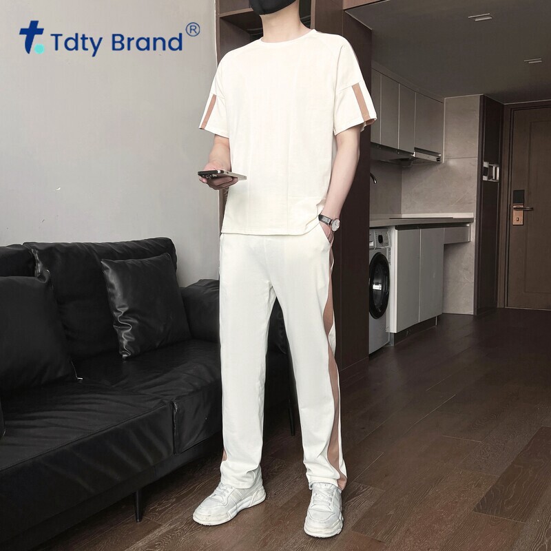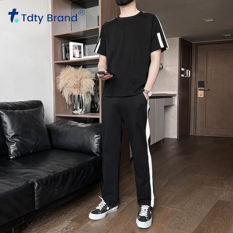 男士 搭配一套中青年男装 纯棉夏季 T恤长裤 百搭两件套 短袖 运动套装