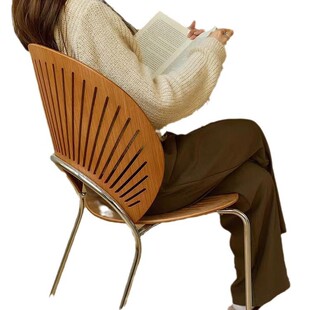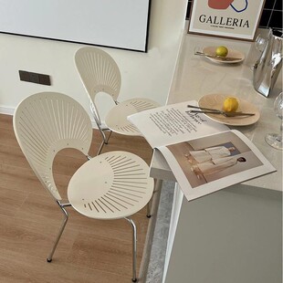 XZC366北欧实木贝壳椅奶油风餐桌椅设计师轻奢白色餐椅网红靠背化
