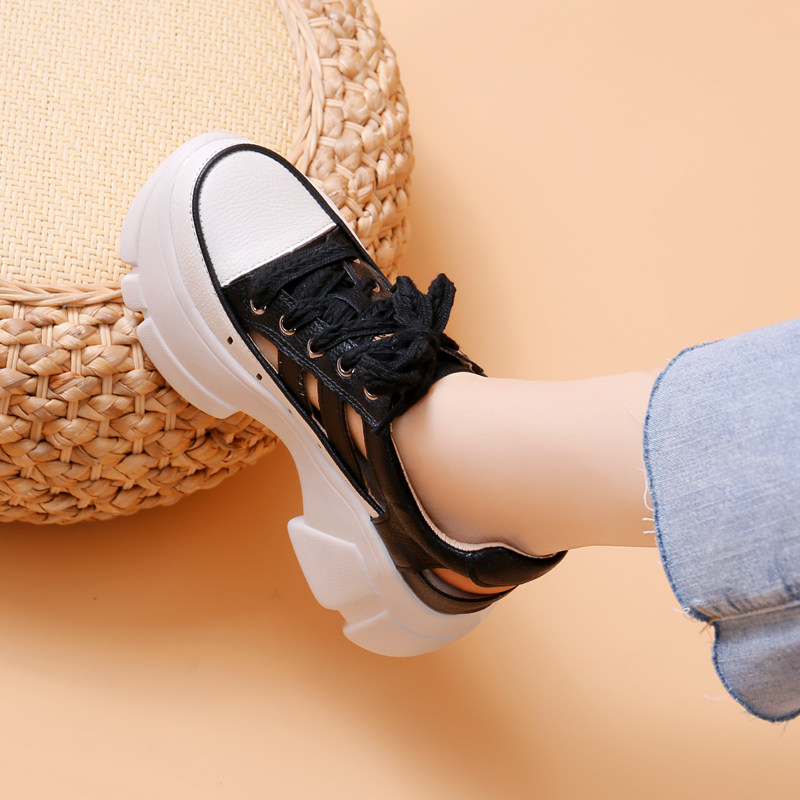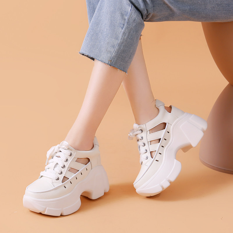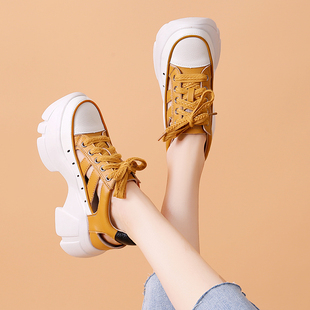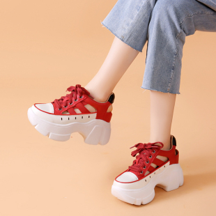 透气镂空内增高7cm系带粗跟运动休闲鞋 夏季 女2026新款 厚底老爹鞋