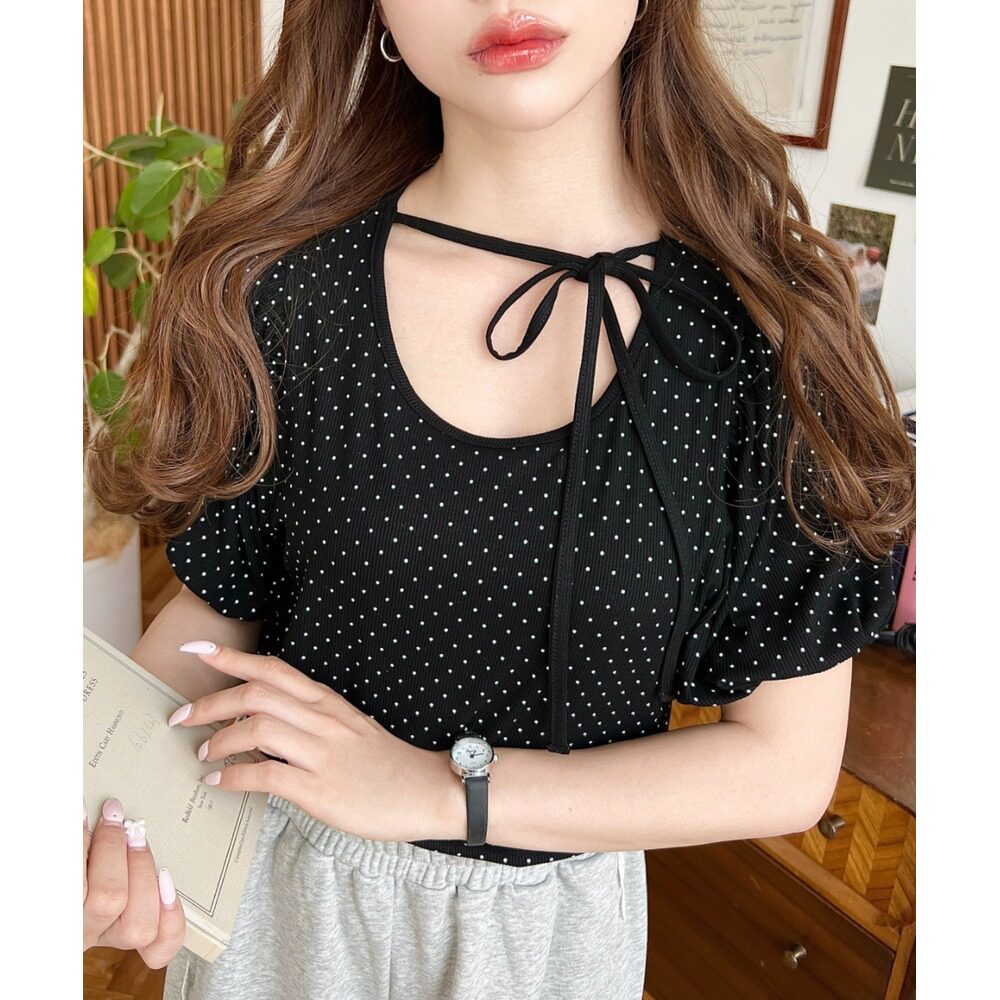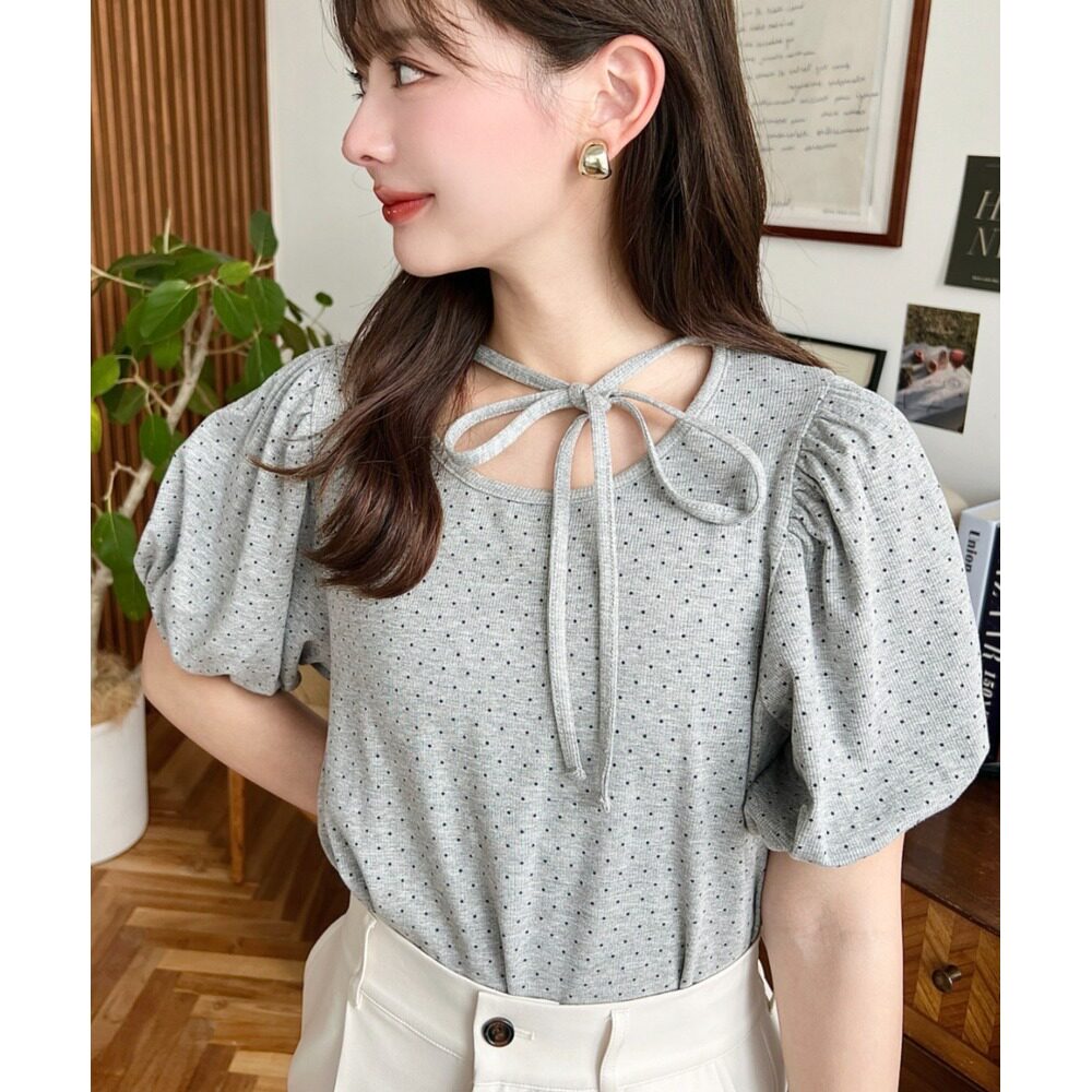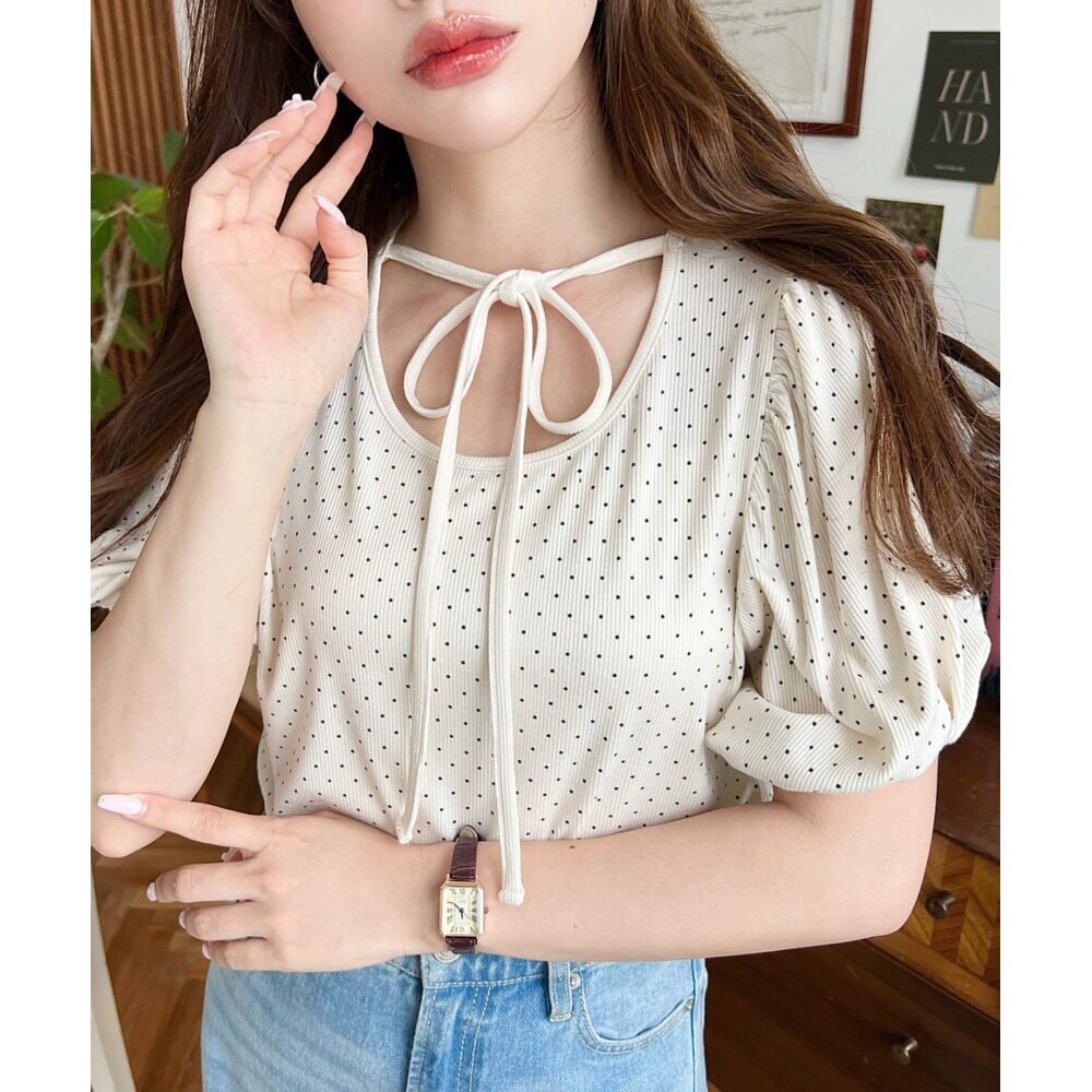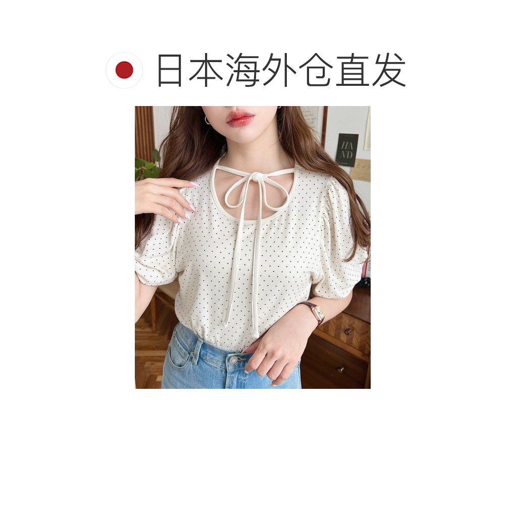 mt07211 上衣 日本直邮moment 女士波点印花蝴蝶结设计泡泡袖