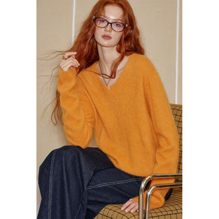 针织打底衫 品牌高级感羊毛衫 女半高领宽松毛衣秋冬加厚羊绒长袖
