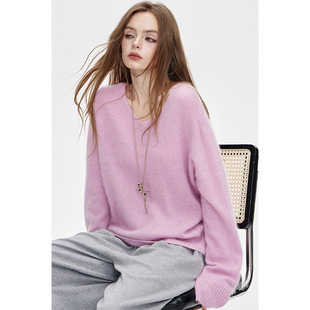 高级感上衣宽松打底针织衫 圆领100%纯山羊绒衫 女高端毛衣秋冬新款