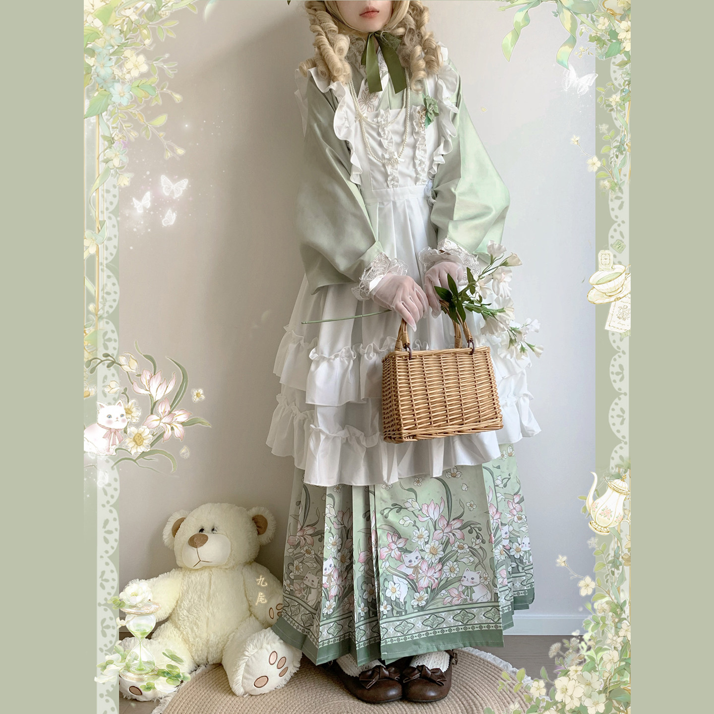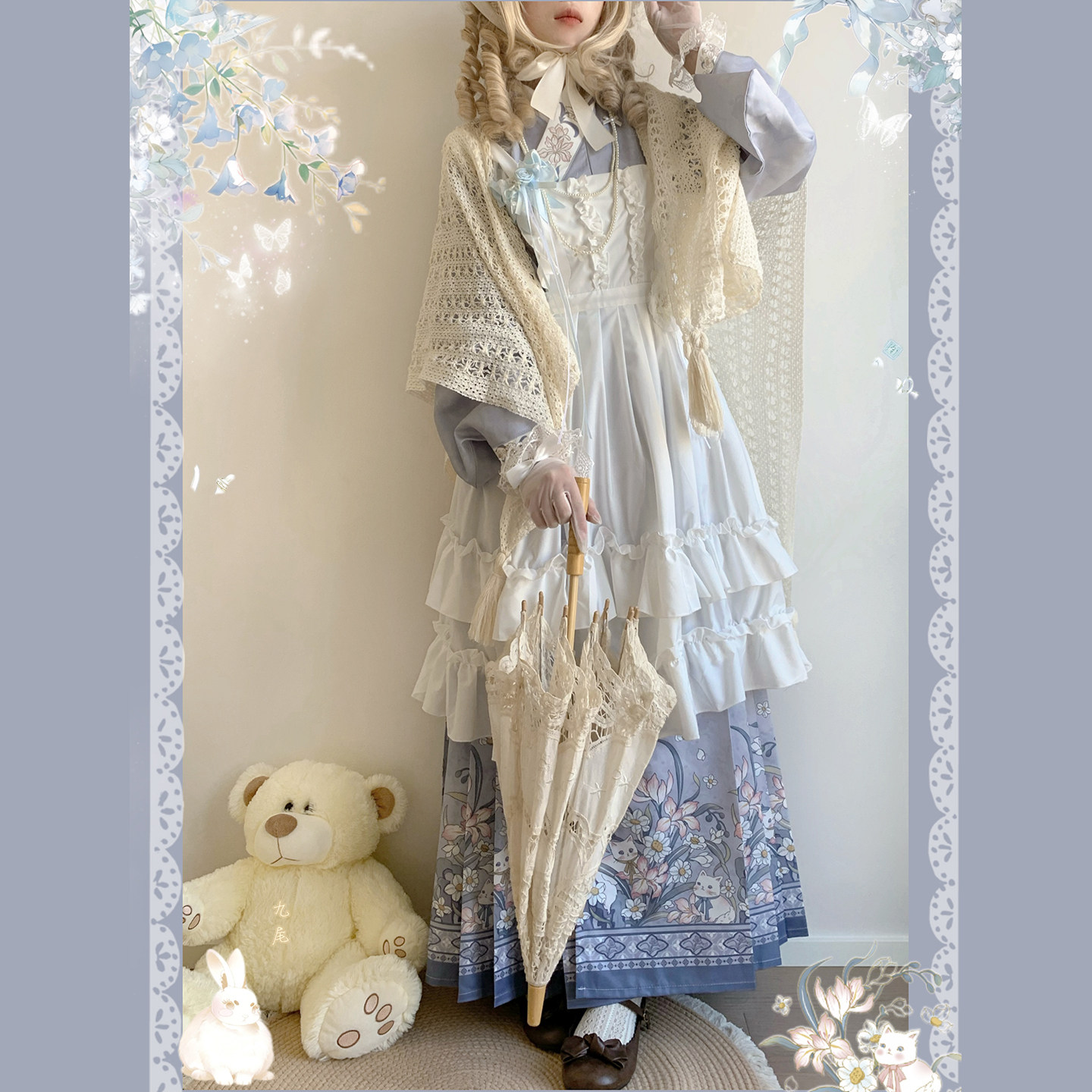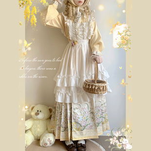 云熏阁原创汉洋折衷琵琶袖 汉服马面罩裙加绒斗篷洛丽塔可爱风秋冬