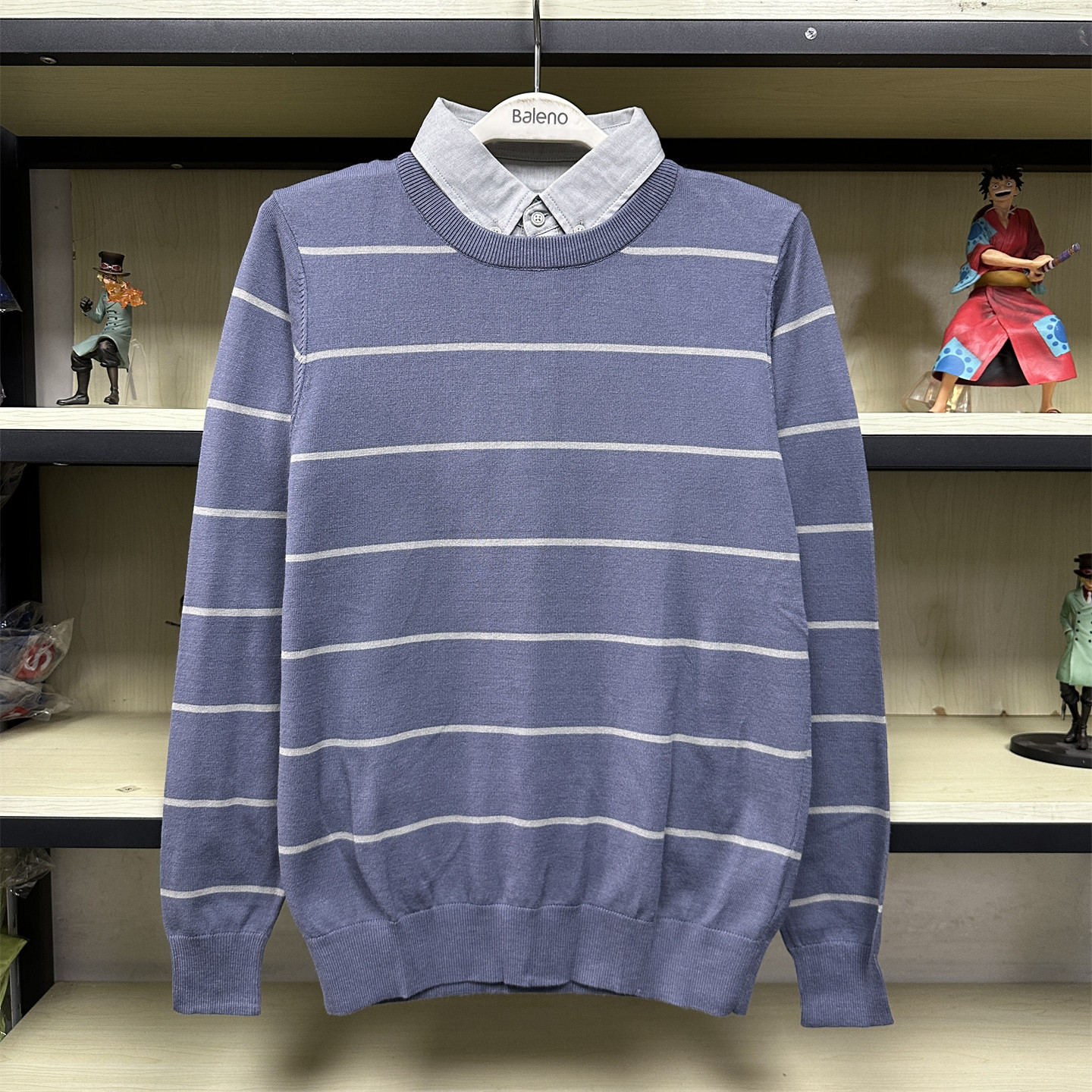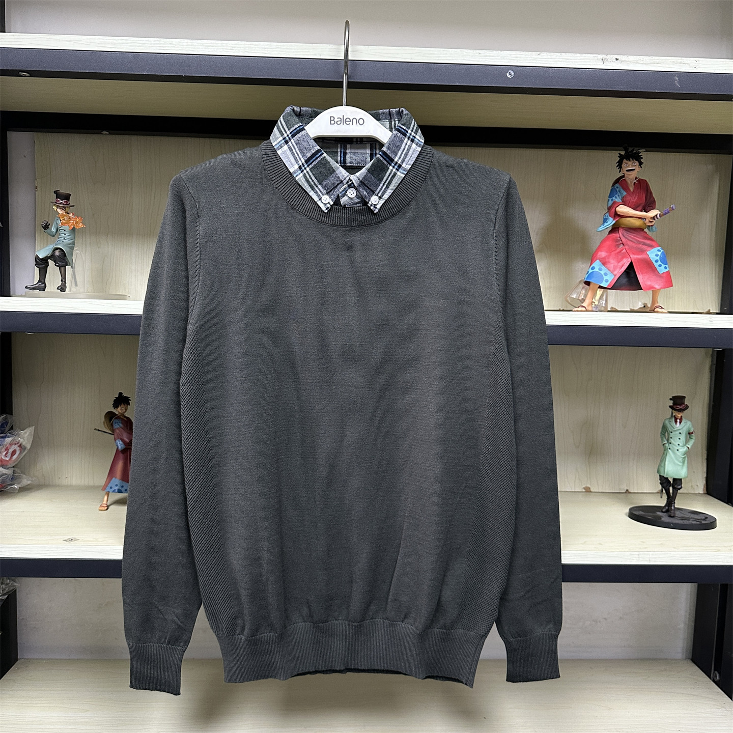 班尼路2021男装 简约百搭拼接假两件针织上衣8821306M004 秋冬新款