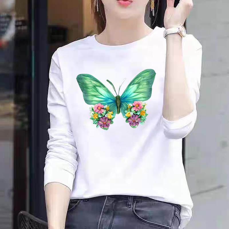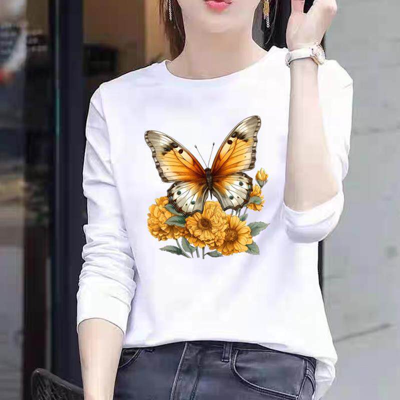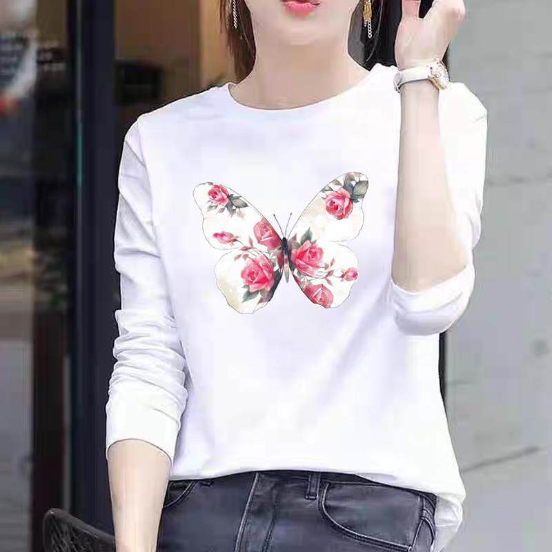圆领T恤 网红印花上衣长袖 洋气花卉可爱女士春秋季 冬甜美ins时尚