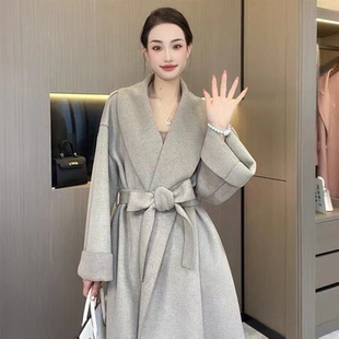新款 立领毛呢外套女2025冬季 双面羊毛大衣 黑色中长款 爱情魔鬼鱼