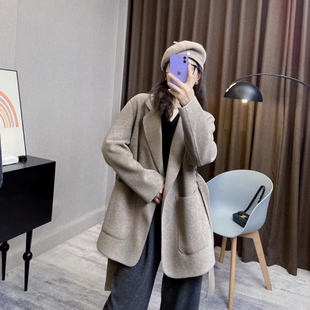 西装 过膝双面羊绒外套 领毛呢子风衣 中长款 纯羊毛双面呢大衣男士