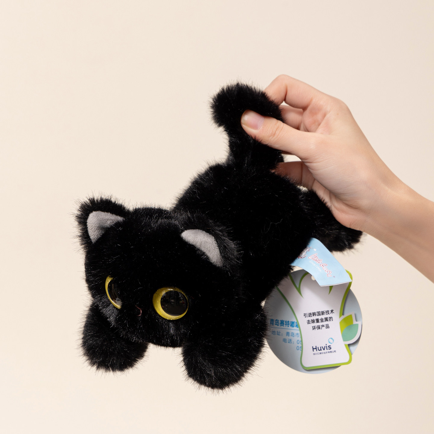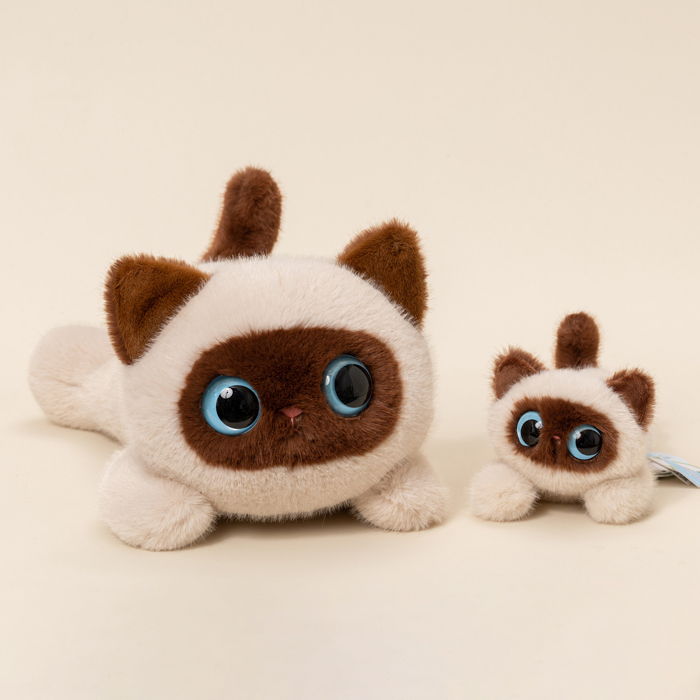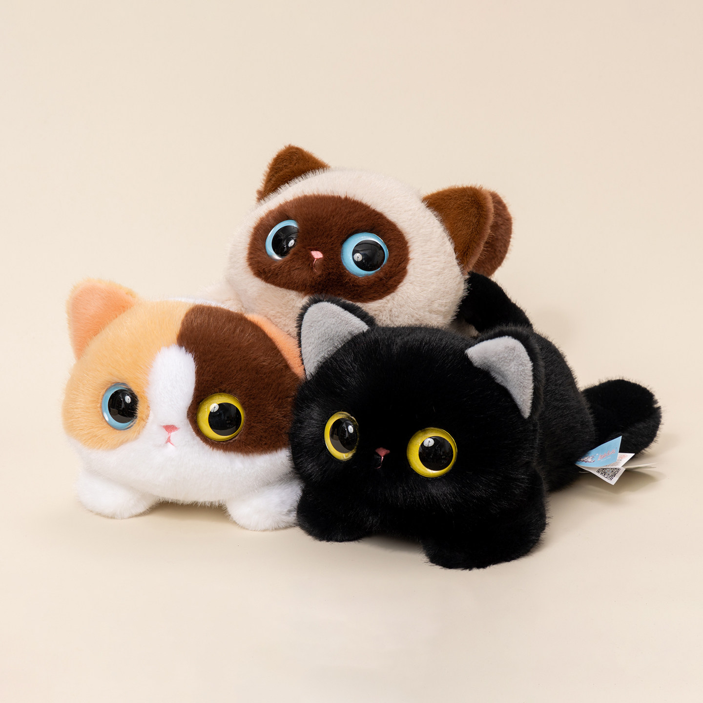 正版 大眼猫咪毛绒玩具治愈系小黑猫公仔暹罗猫玩偶抱枕生日礼物女