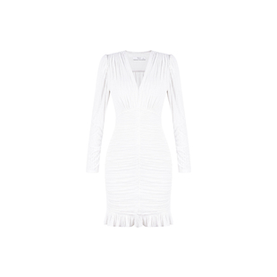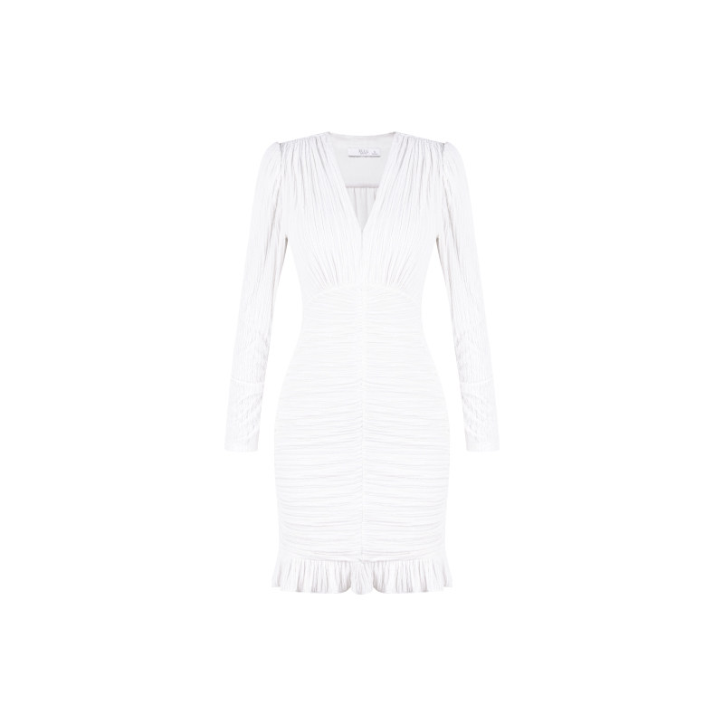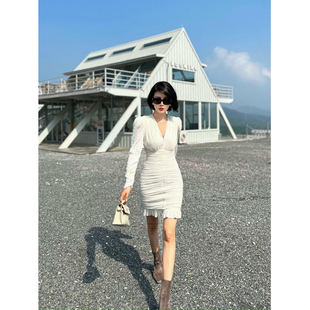 YoungGirlDay纯欲风性感V领紧身显瘦褶皱长袖 打底连衣裙包臀短裙