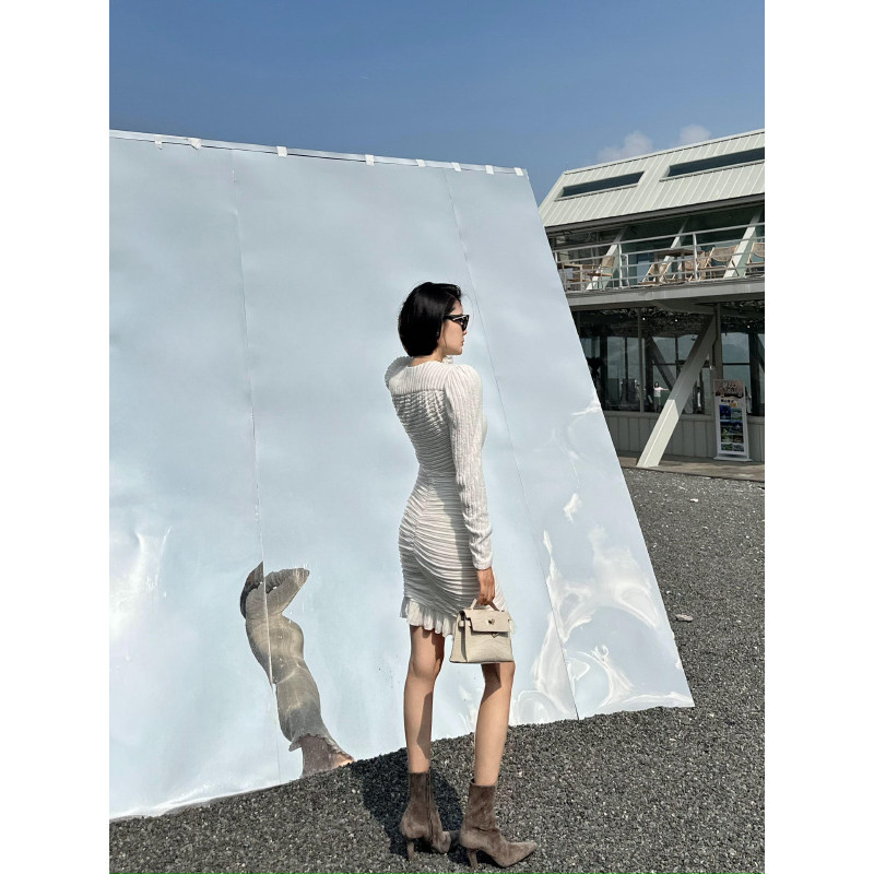 易碎商店·雾绒垂绪慵懒斜肩针织连衣裙气质内搭包臀裙子 现货