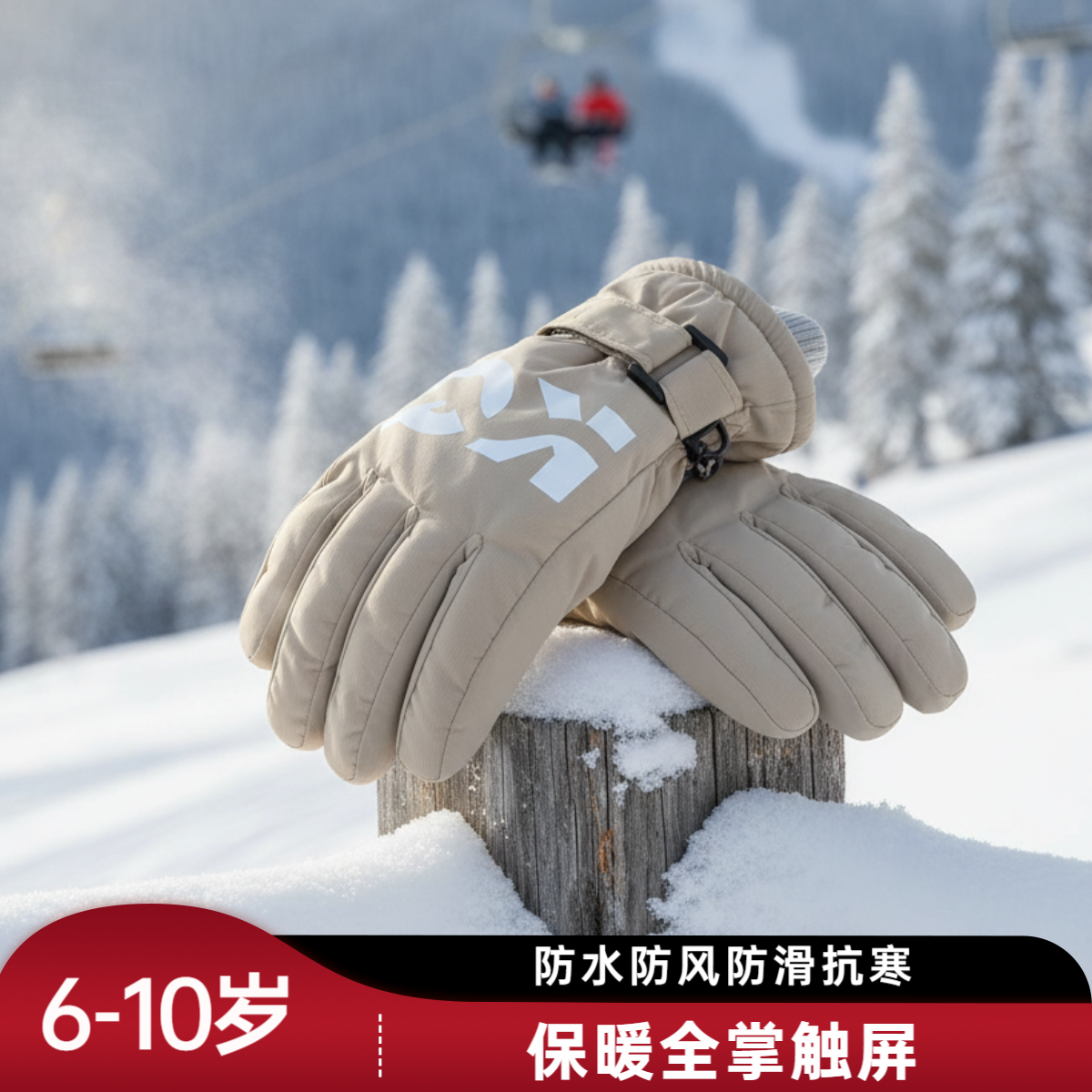 手套儿童秋冬季 加绒保暖小学生男童女孩加厚骑车防风防水骑行滑雪