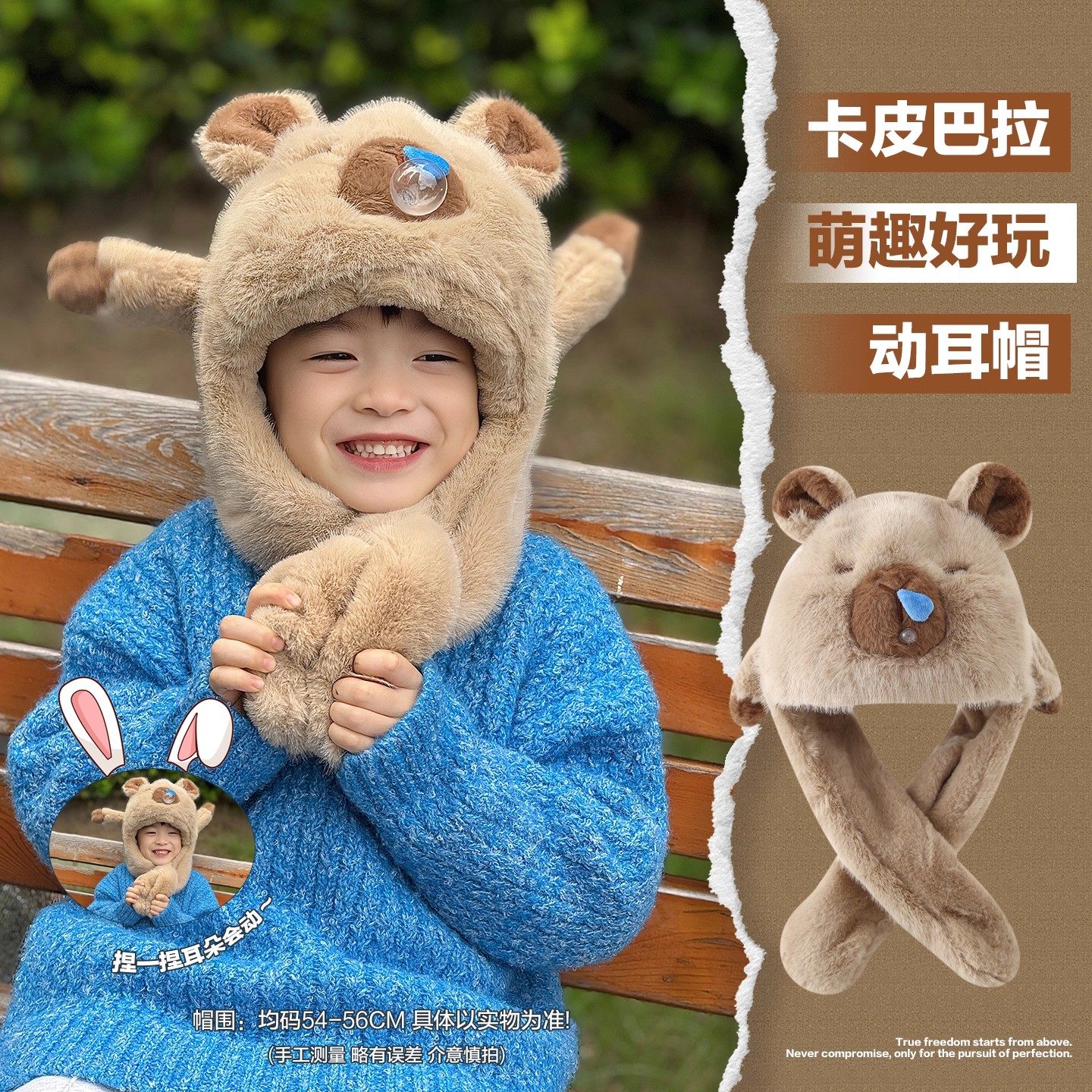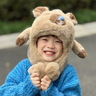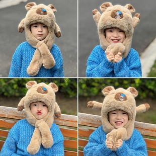 男孩围脖冬天 冬季 卡皮巴拉帽子儿童围巾一体捏耳朵会动 2025新款