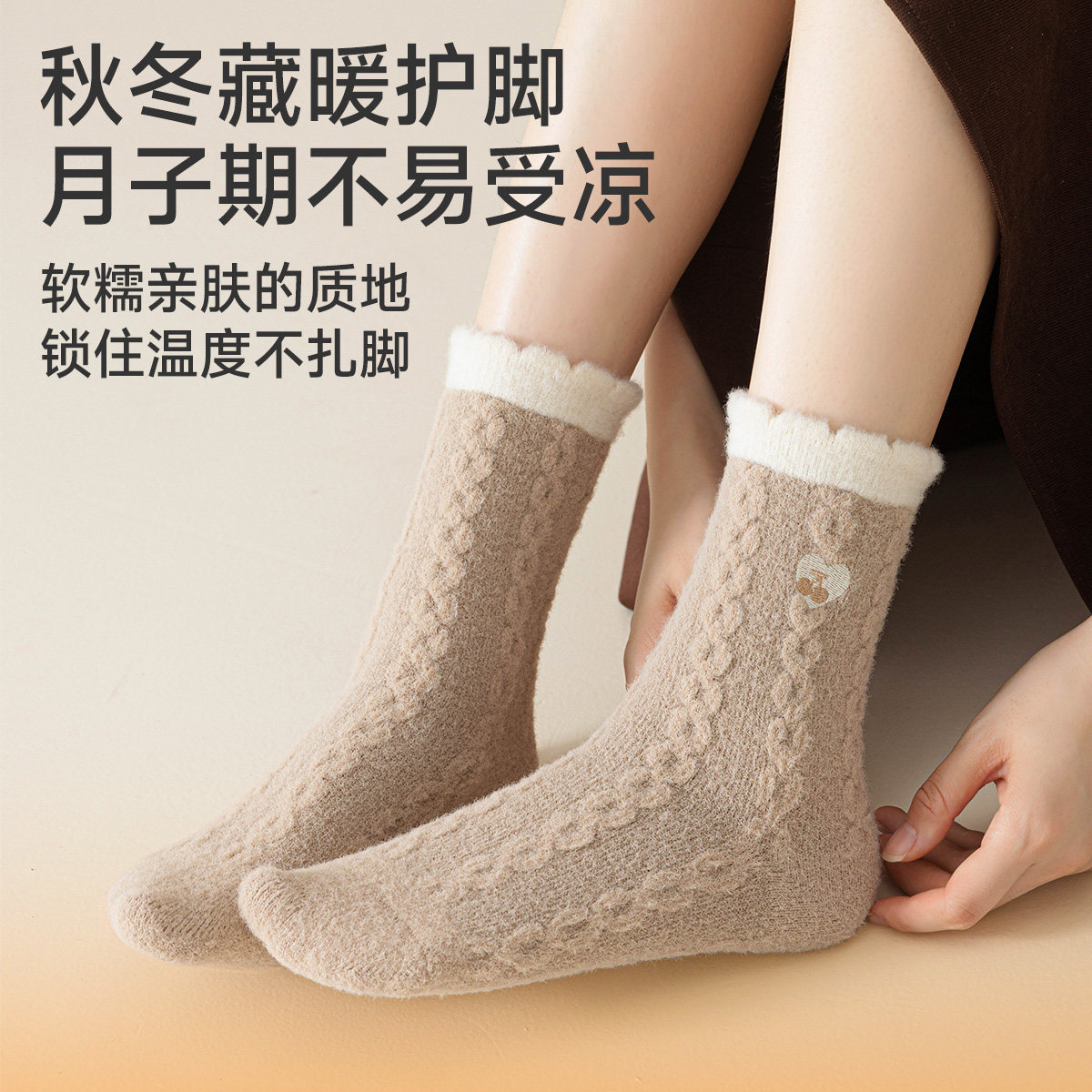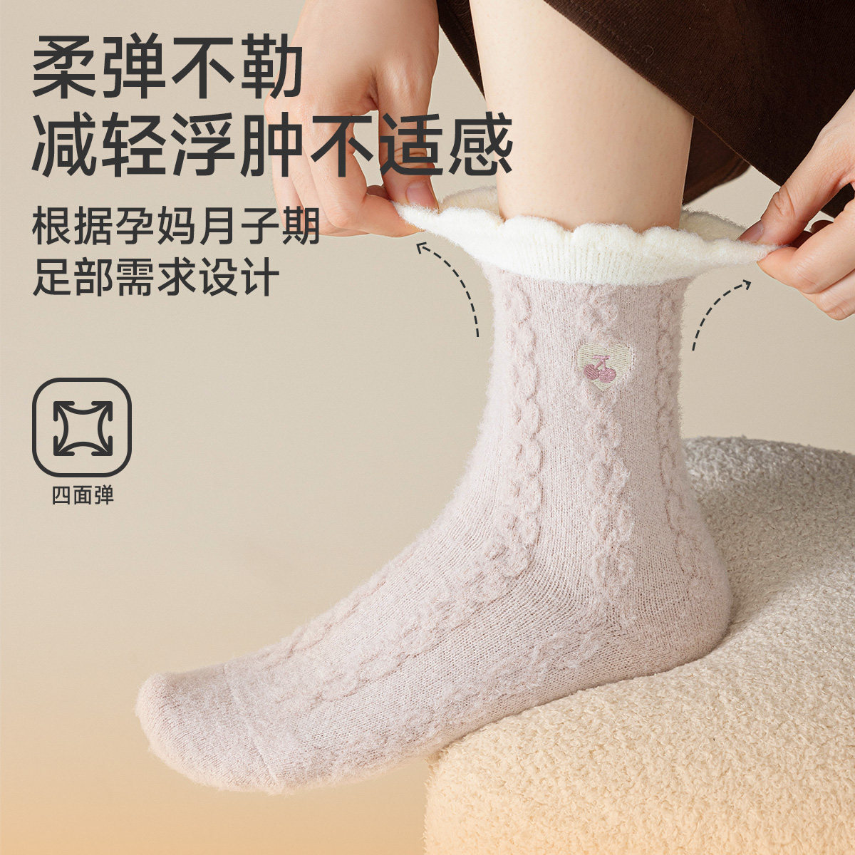 婧麒月子袜子女冬加厚保暖中筒袜2025新款 产后松口不勒孕妇地板袜