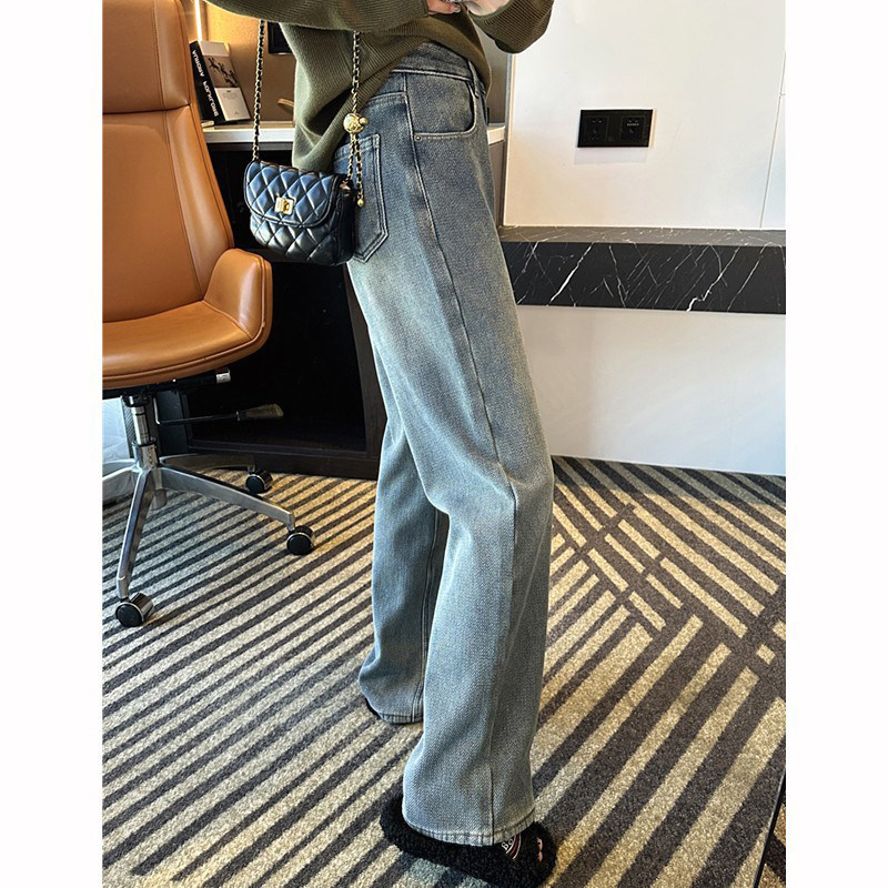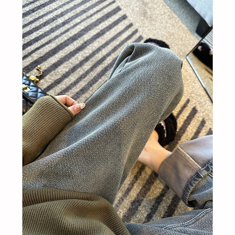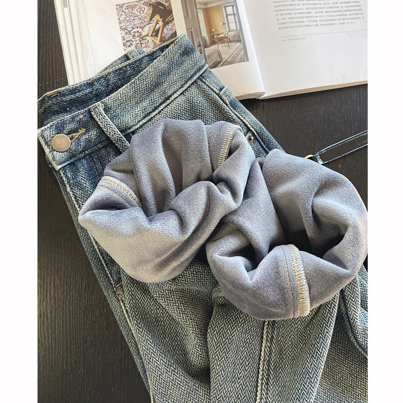 牛仔裤 子秋冬新款 女 软糯人字纹防风加厚绒宽松阔腿长裤 温暖过冬