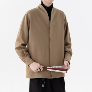 V37日系复古原牛水洗牛仔衬衫 潮牌cityboy宽松休闲衬衣外套 男冬季