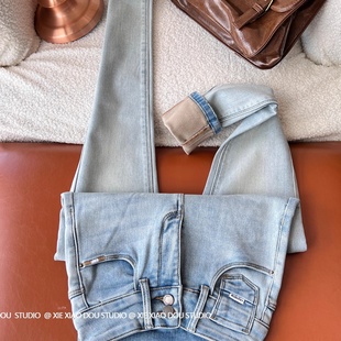 百搭显瘦弹力提臀小脚裤 女秋冬新款 女潮 蜜桃臀高腰铅笔牛仔裤 时尚