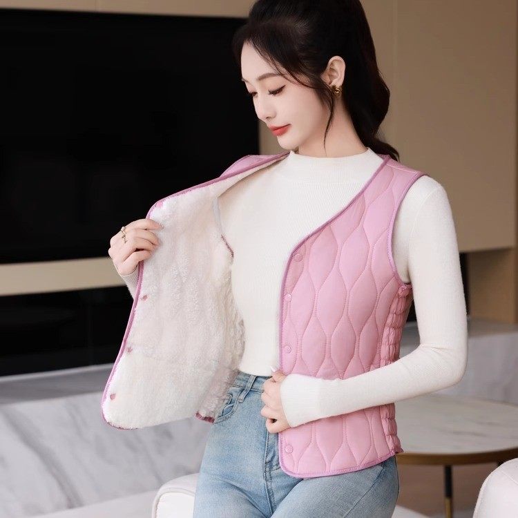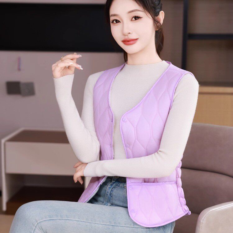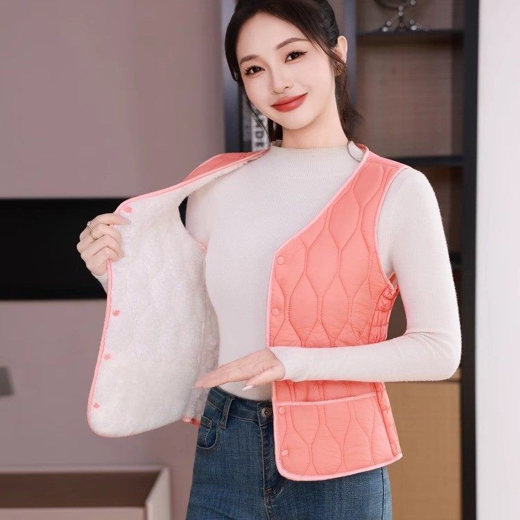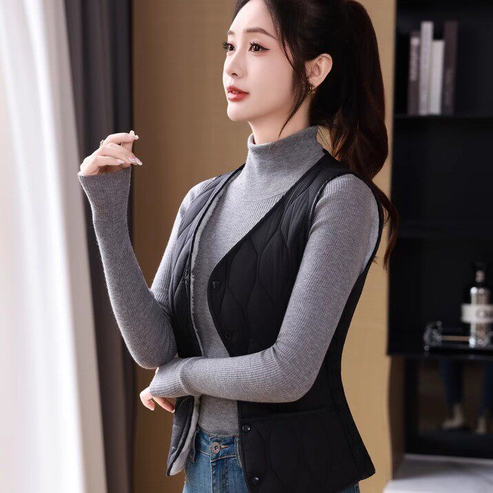 百搭内胆 v领坎肩修身 2025新款 秋冬羽绒棉马甲女加绒保暖背心短款