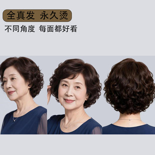 假发女短发真发全真人发妈妈款 全头套中老年短卷发自然轻薄假发套