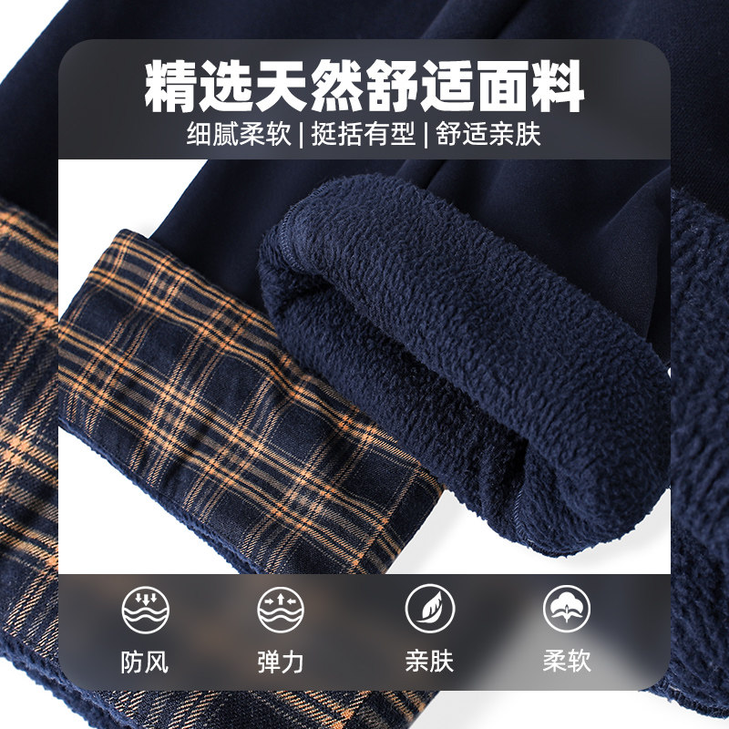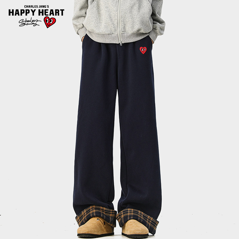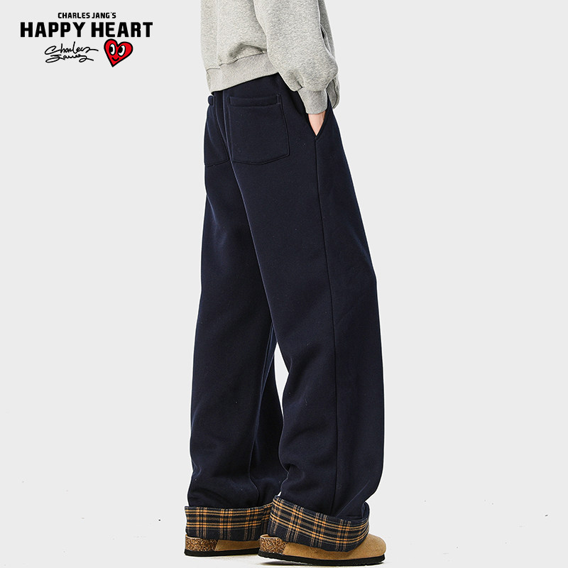 宽松休闲裤 加绒加厚保暖卫裤 子男女冬季 查尔斯桃心格子卷边毛呢裤
