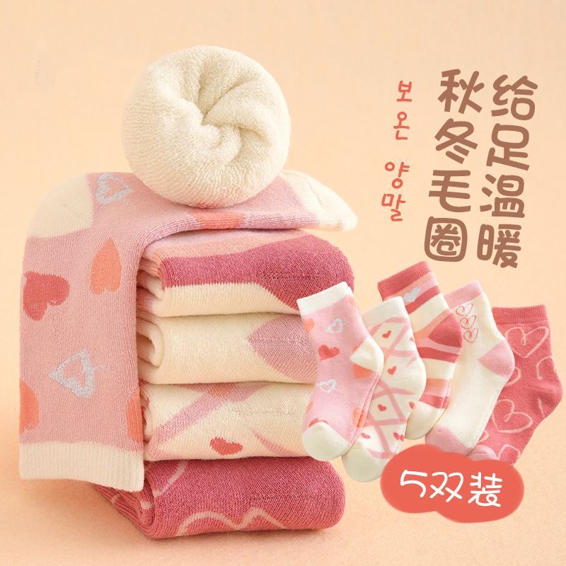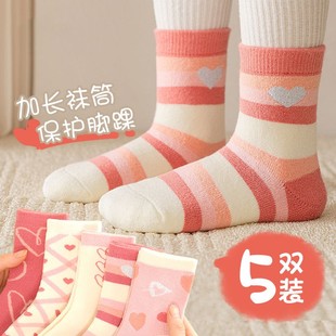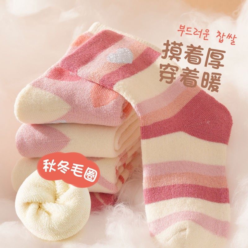 儿童袜子女童冬季 加绒加厚宝宝中长筒毛圈袜厚袜冬天保暖童袜HH