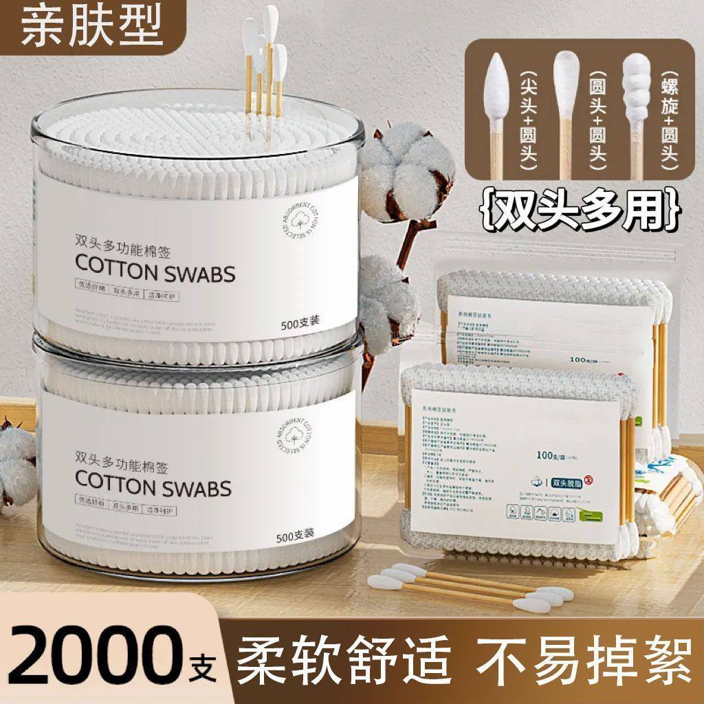 双头棉签化妆卸妆用棉签棉棒掏耳朵家用一次性尖头竹棒棉球清洁棉