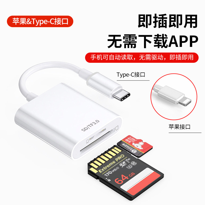 潮拍相机读卡器sd卡适用苹果手机索尼佳能尼康连接内存直传OTG传输线sony转换typec头iPhone口ccd多合一USB二